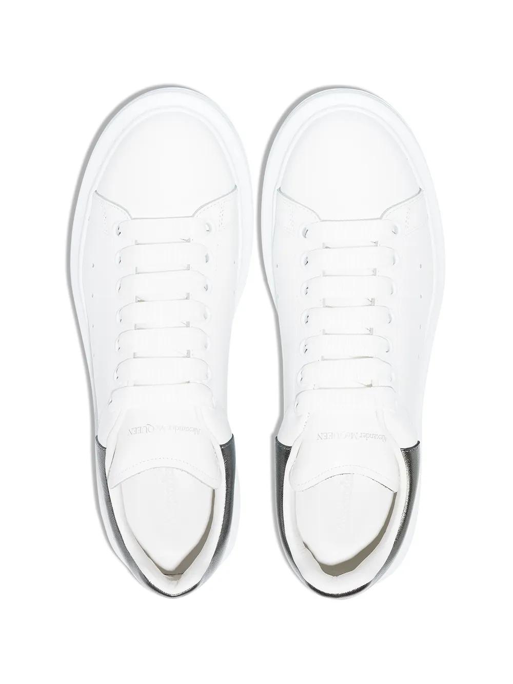 \ White and metallic silver Made from leather Logo print heel counters Perforated sides Logo tabs at tongues Lace-up front fastenings Chunky rubber solesCrafted in Italy
