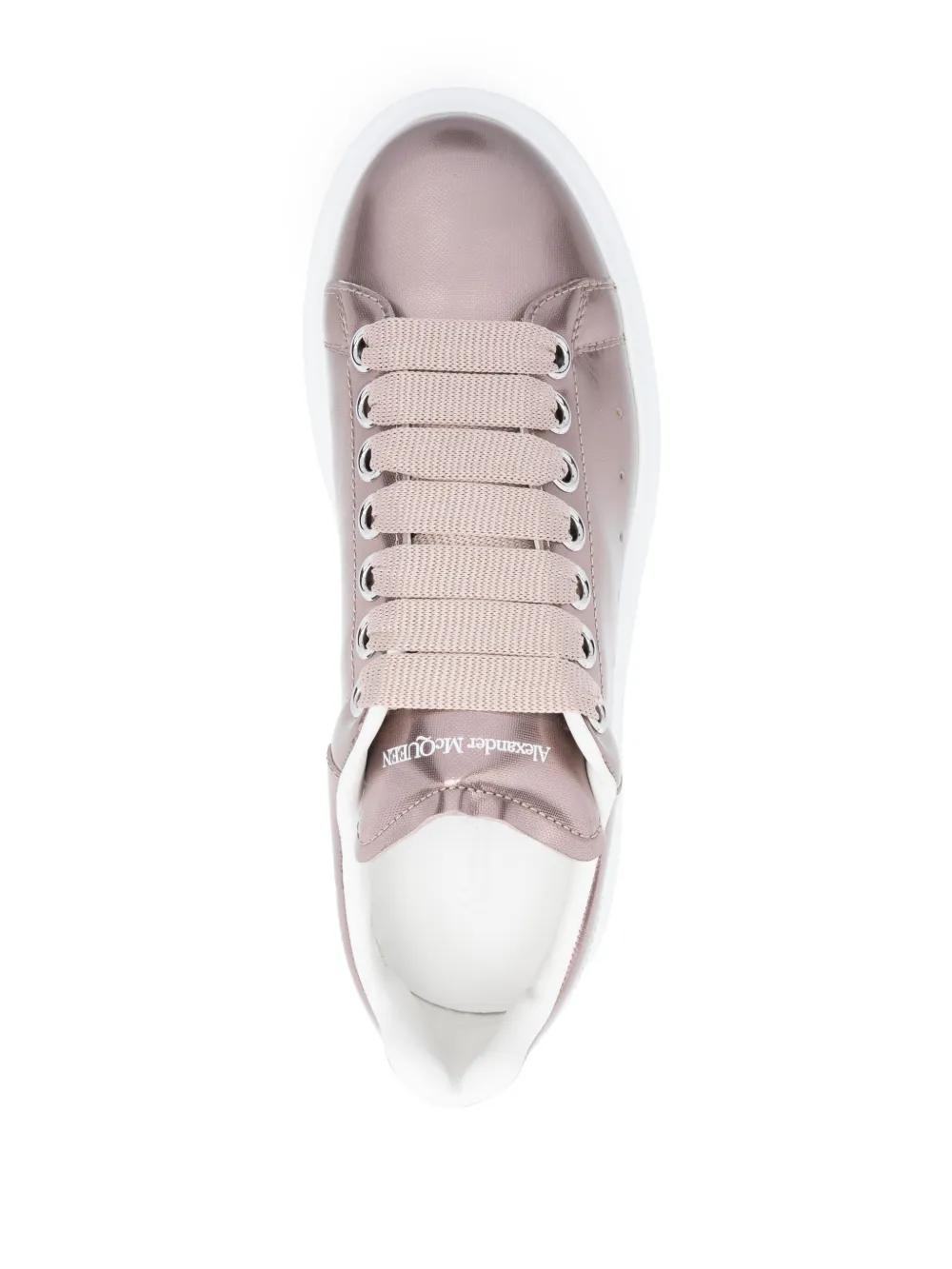 pink calf leather metallic effect front lace-up fastening branded heel counter logo-print tongue perforated detailing almond toe branded leather insole rubber sole This piece comes complete with a protective dust bag.