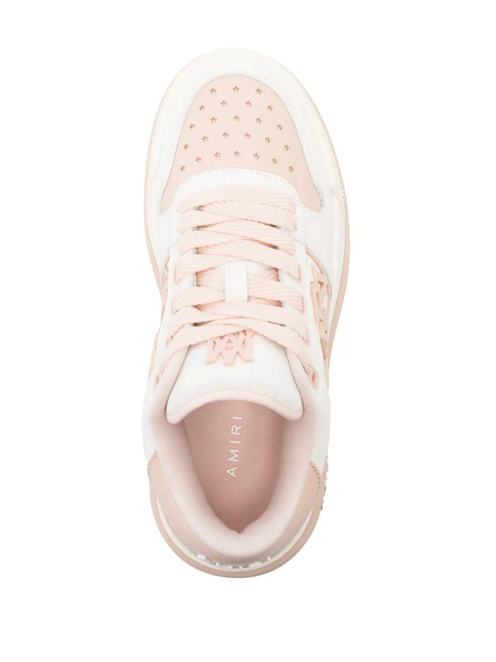 light pink/white calf leather panelled design logo patch to the side perforated toebox logo patch at the tongue contrasting branded heel counter round toe front lace-up fastening flat rubber sole with embossed logo branded insole cushioned insole