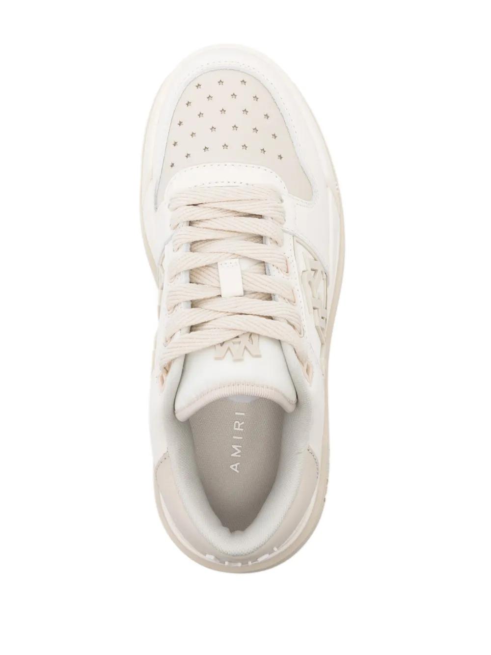 light beige/white calf leather panelled design logo patch to the side star perforated toebox logo patch at the tongue contrasting branded heel counter round toe front lace-up fastening flat rubber sole with embossed logo branded cushioned insole