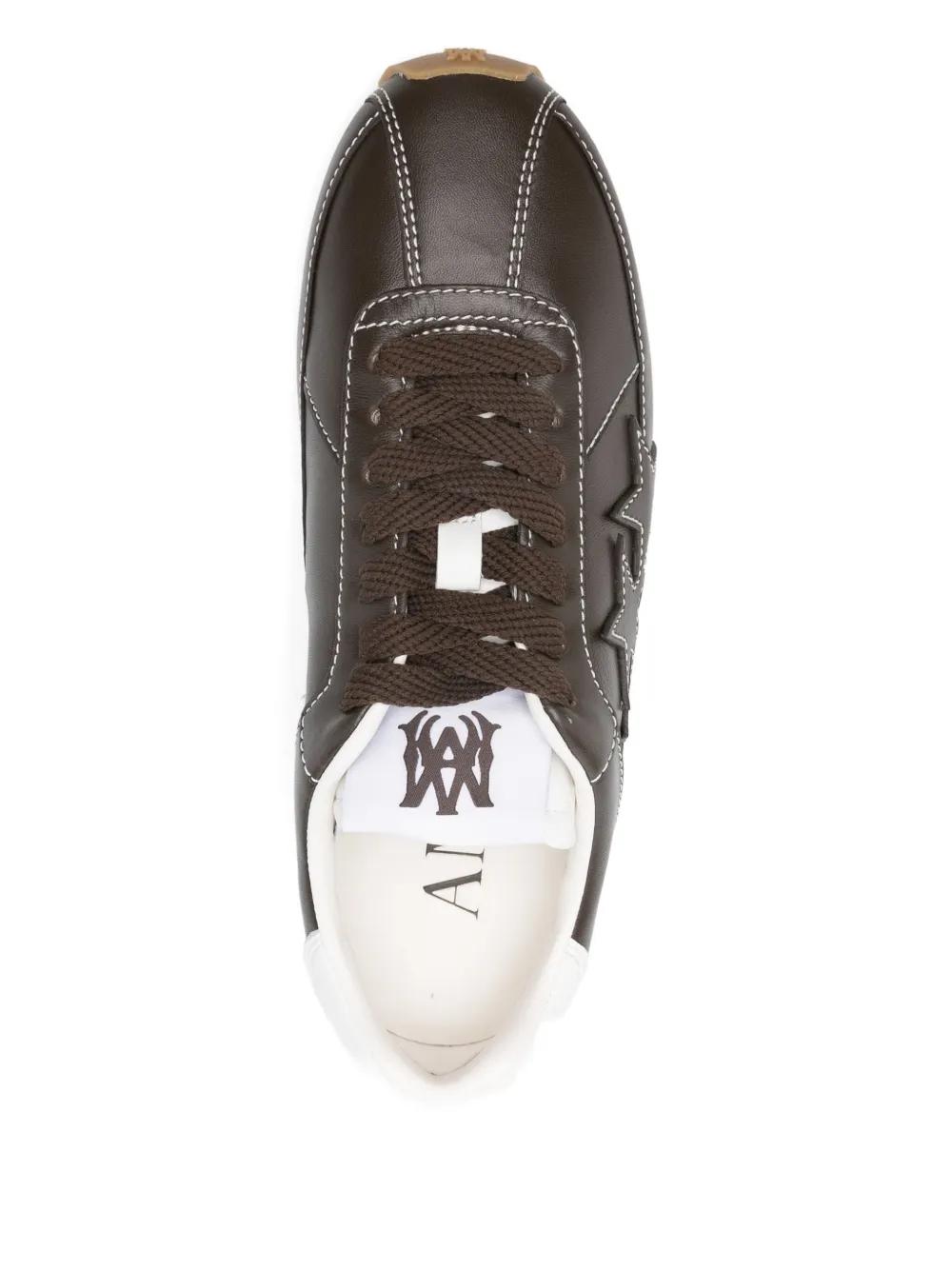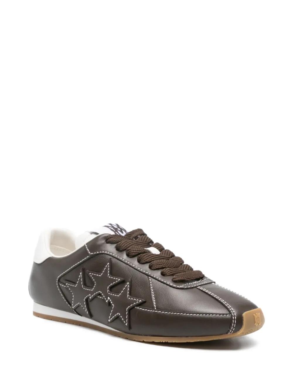 brown leather upper star embroidery lace-up fastening contrast stitching rubber sole