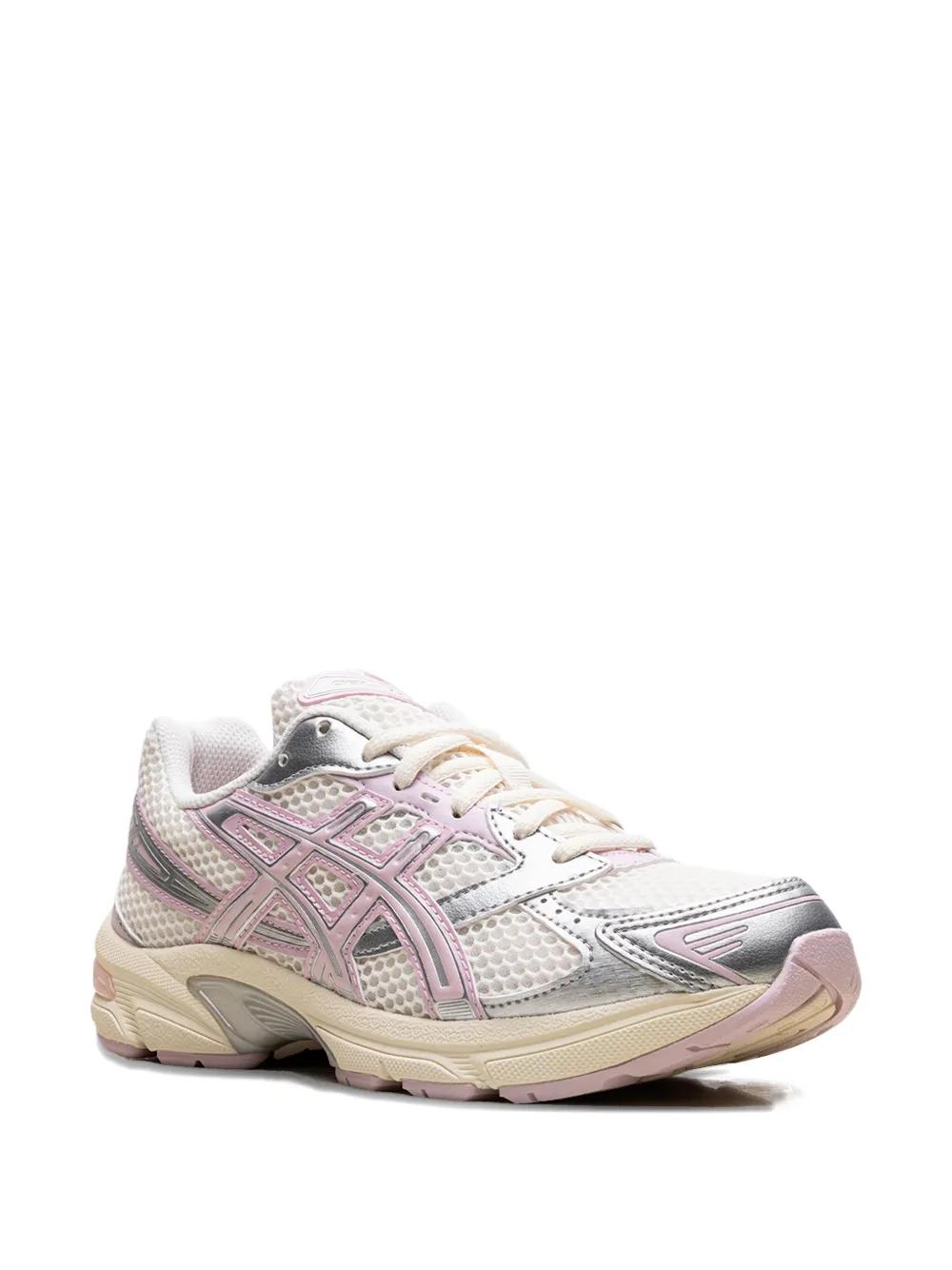 beige mesh panels metallic panels rubber sole lace-up fastening