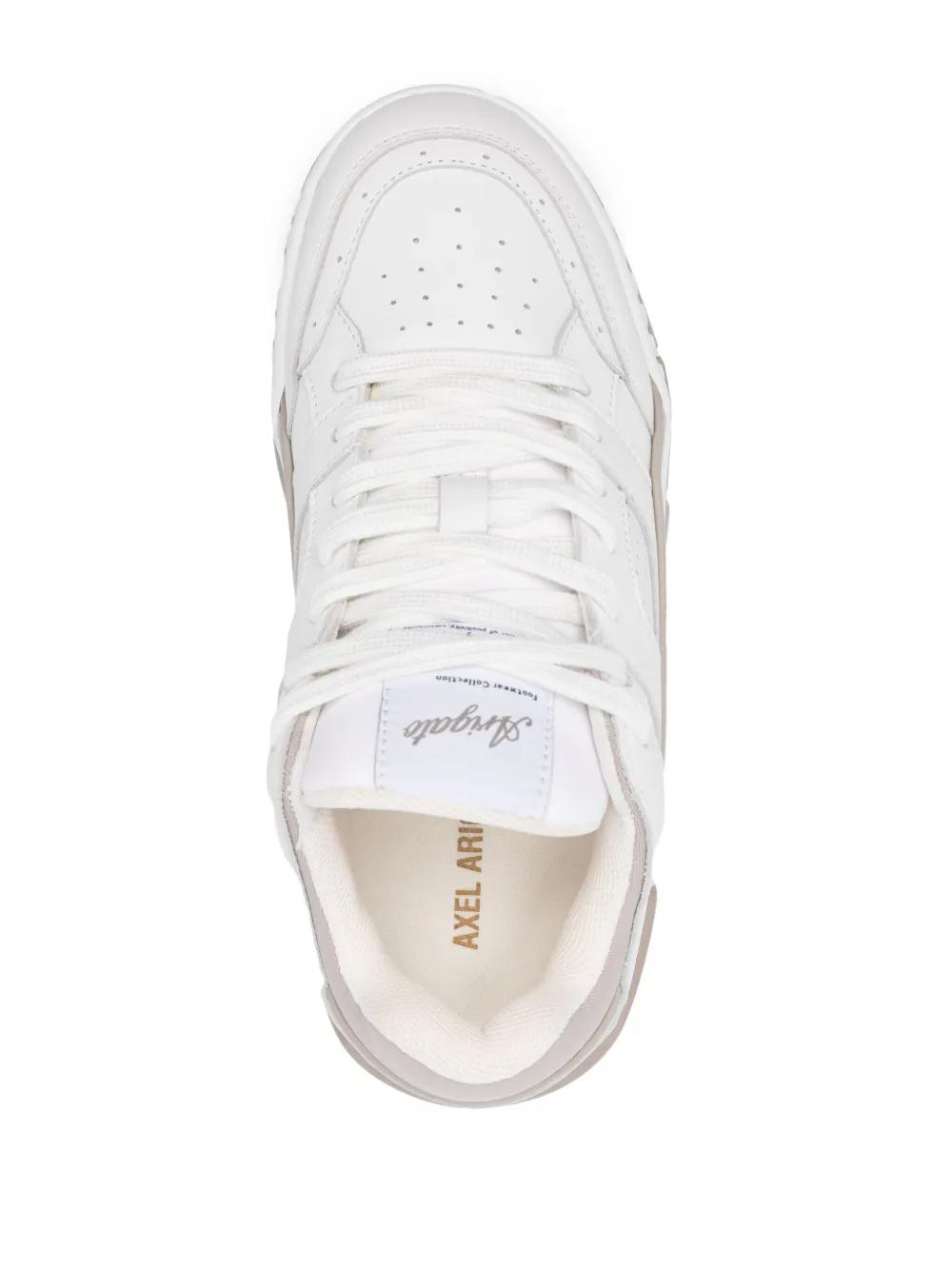 white calf leather multi-panel design front lace-up fastening contrasting heel counter padded ankle logo stamp at side logo patch at the tongue side perforated detailing perforated toebox round toe branded insole logo-embossed at the sole flat rubber sole This piece comes complete with a protective dust bag.