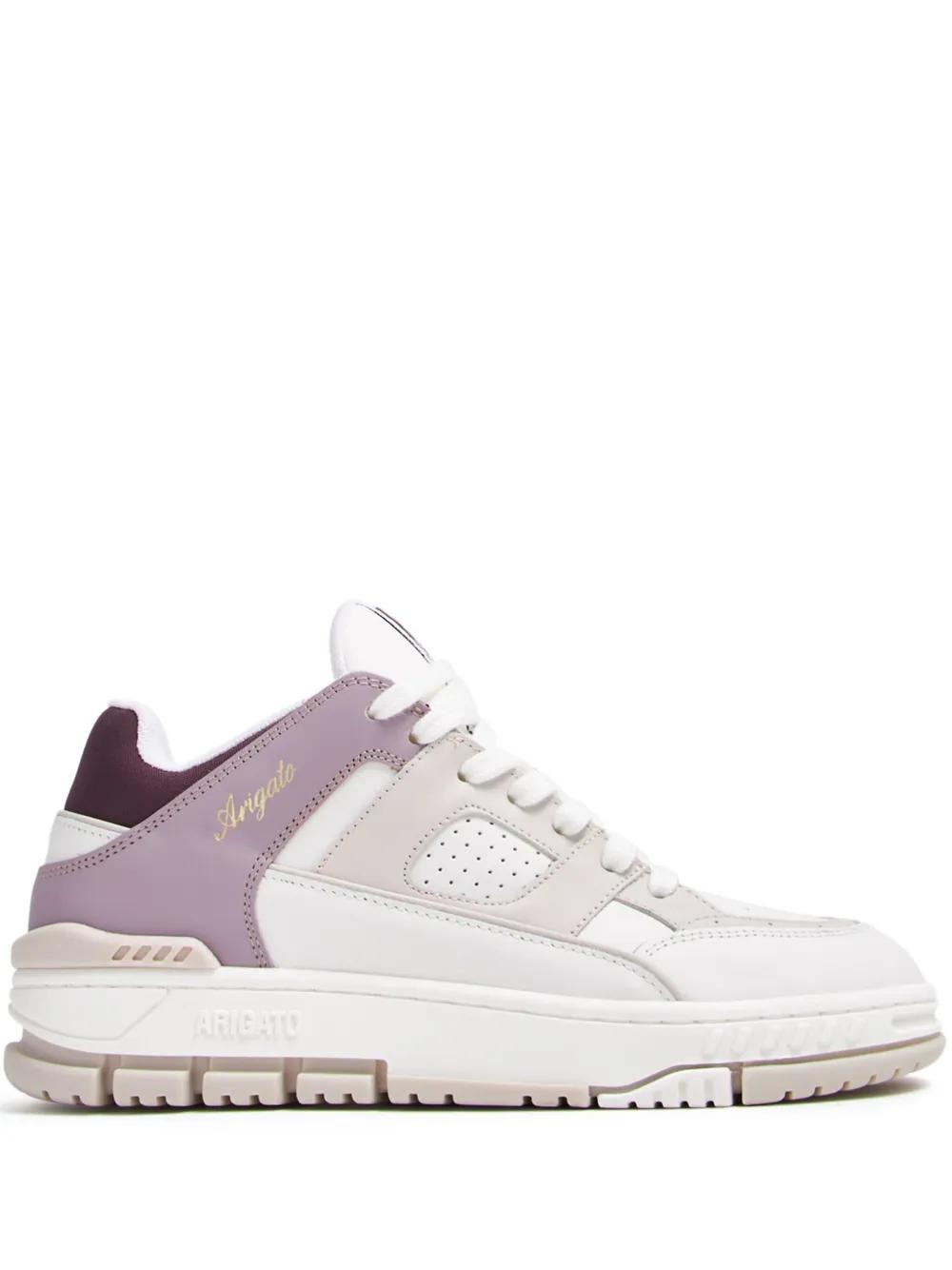 white/lilac purple leather/SEAQUAL® YARN panelled design perforated detailing logo stamp at side logo patch at the tongue front lace-up fastening round toe flat rubber sole