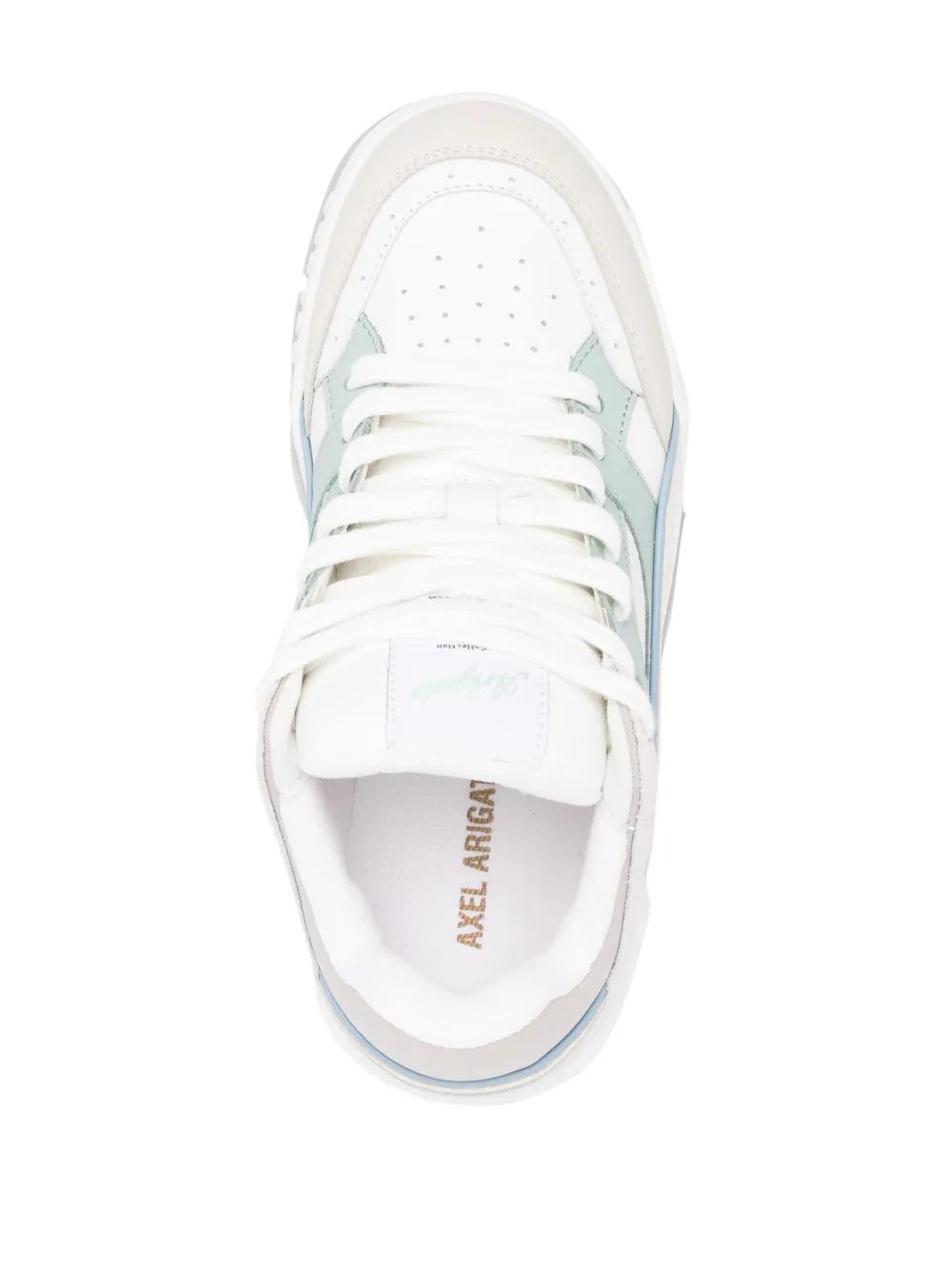 white/multicolour calf leather colour-block panelled design round toe perforated toebox logo patch at the tongue logo print to the side padded ankle branded insole full lining logo at the sole flat rubber sole front lace-up fastening