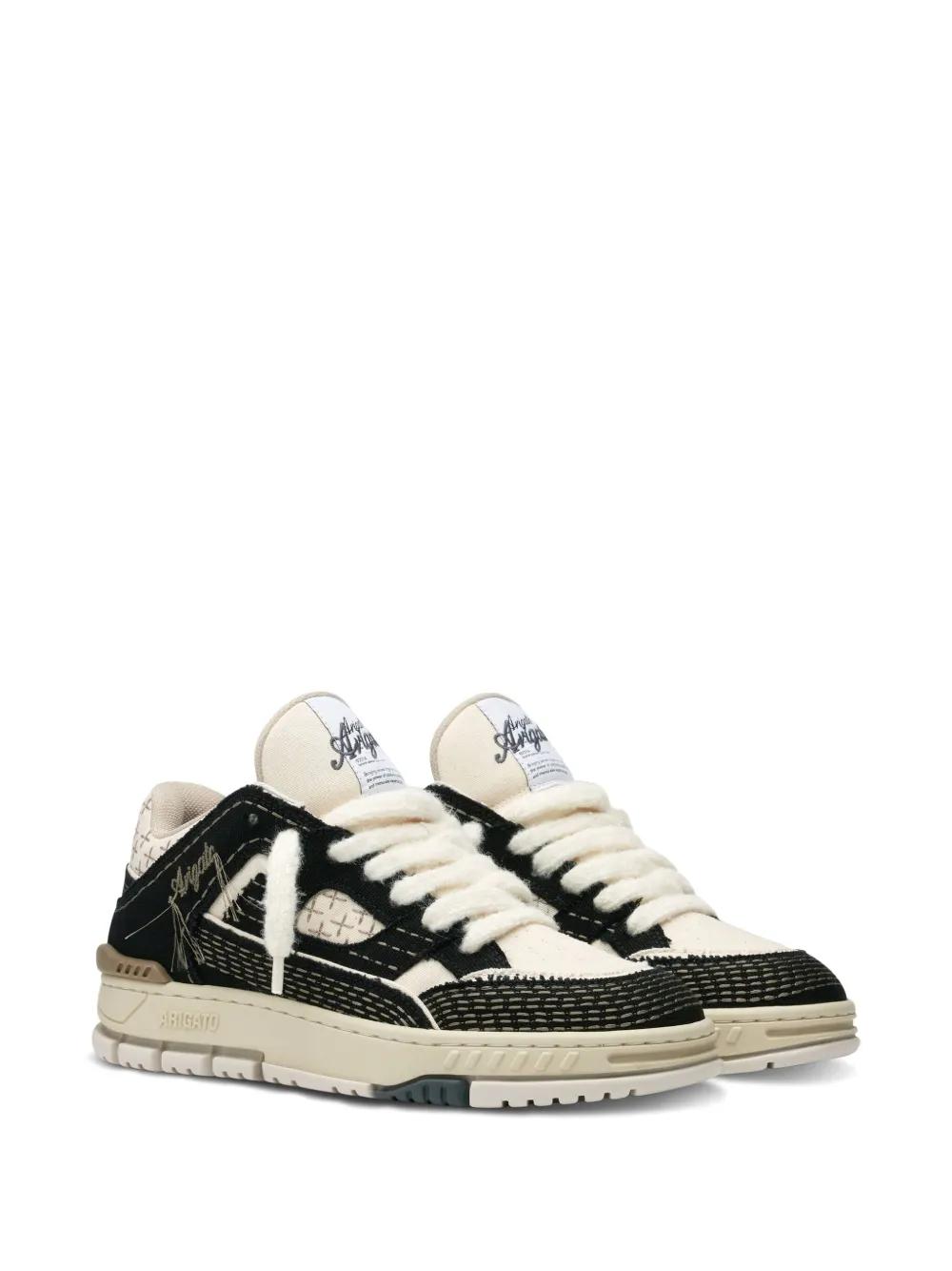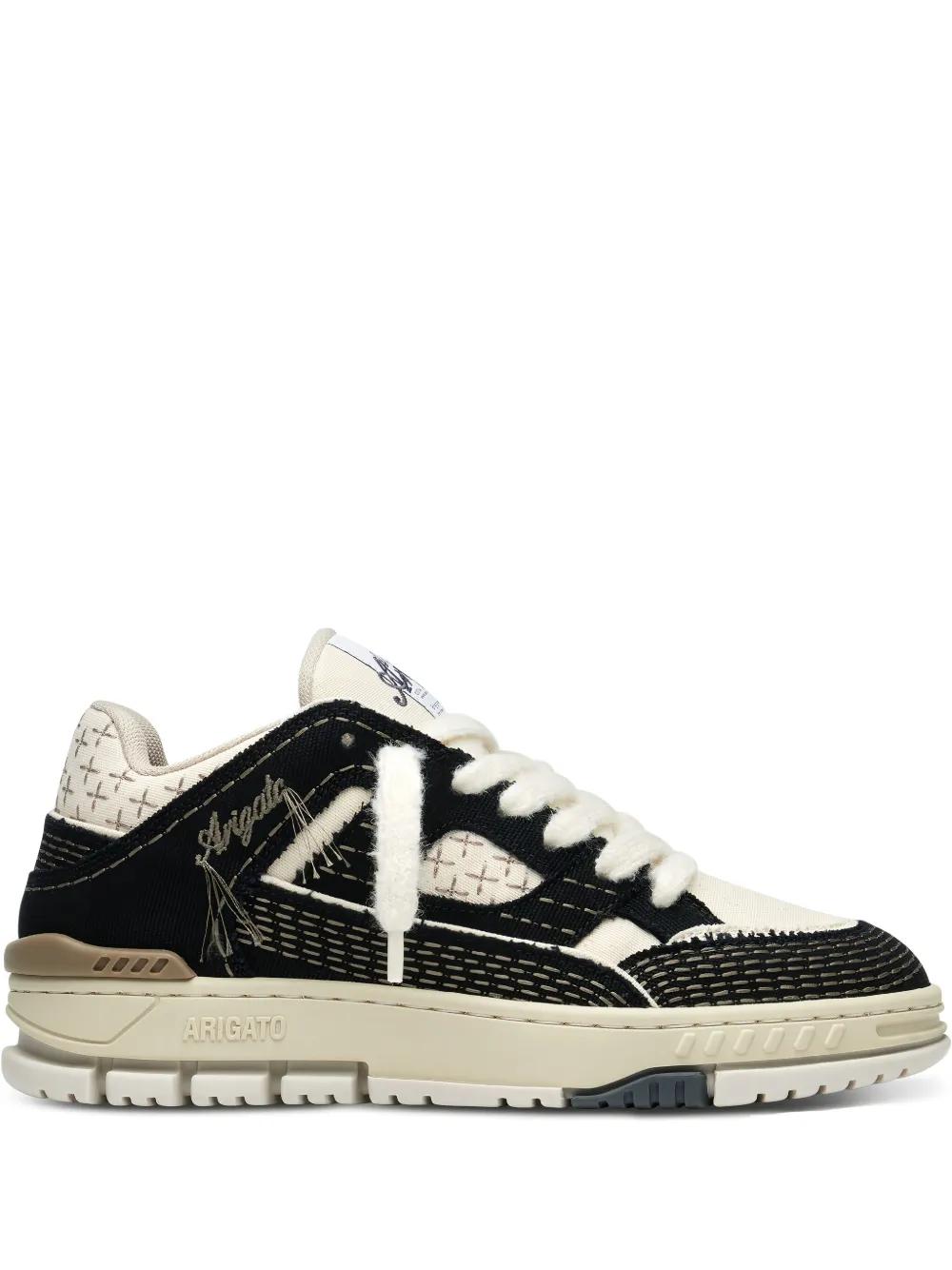 black front lace-up fastening panelled design embroidered design logo patch at the tongue