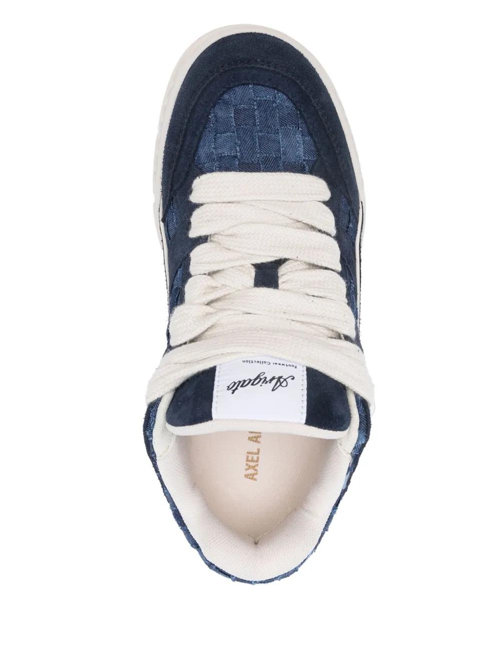 indigo blue front lace-up fastening chunky sole padded design embroidered logo to the side