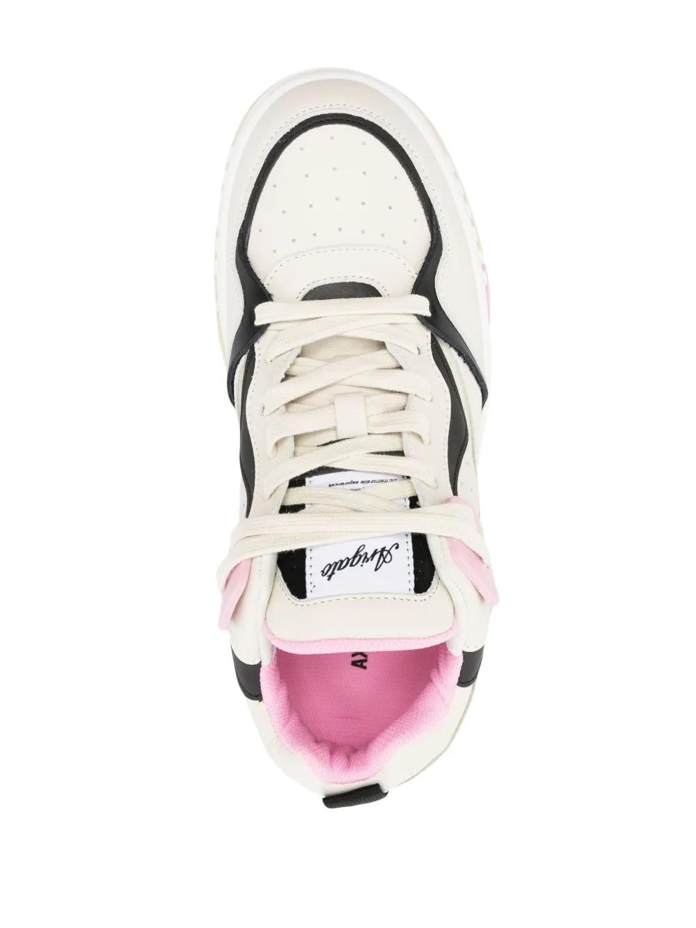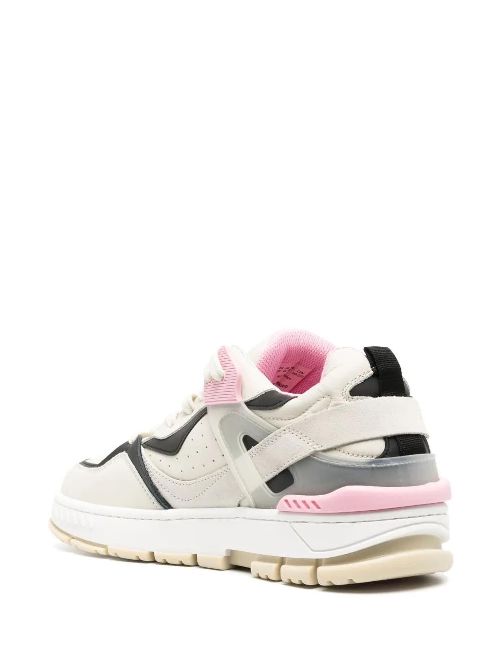white/multicolour calf leather panelled design logo patch at the tongue perforated toebox round toe front lace-up fastening flat rubber sole
