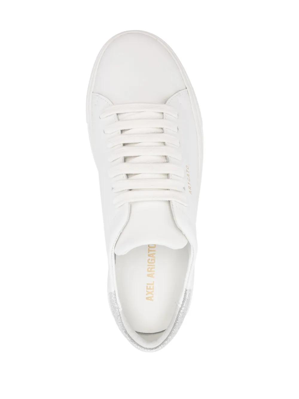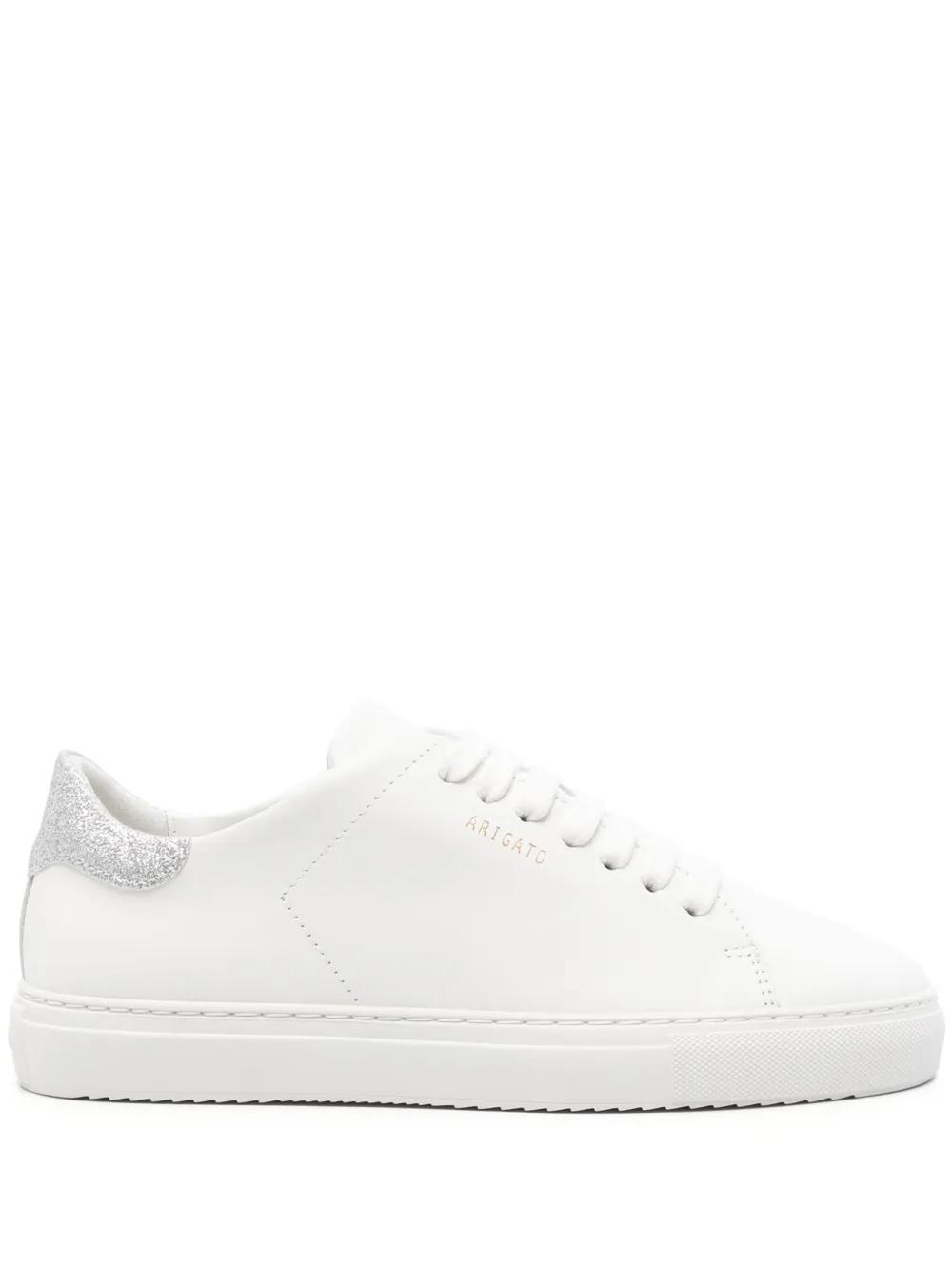 white calf leather smooth grain contrasting heel counter logo stamp at side embossed logo to the rear front lace-up fastening round toe branded leather insole flat rubber sole