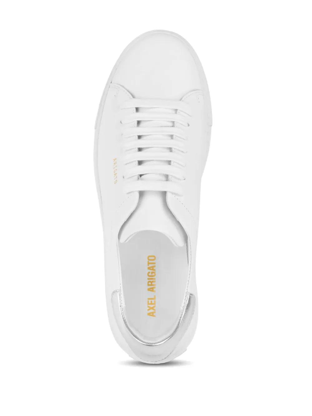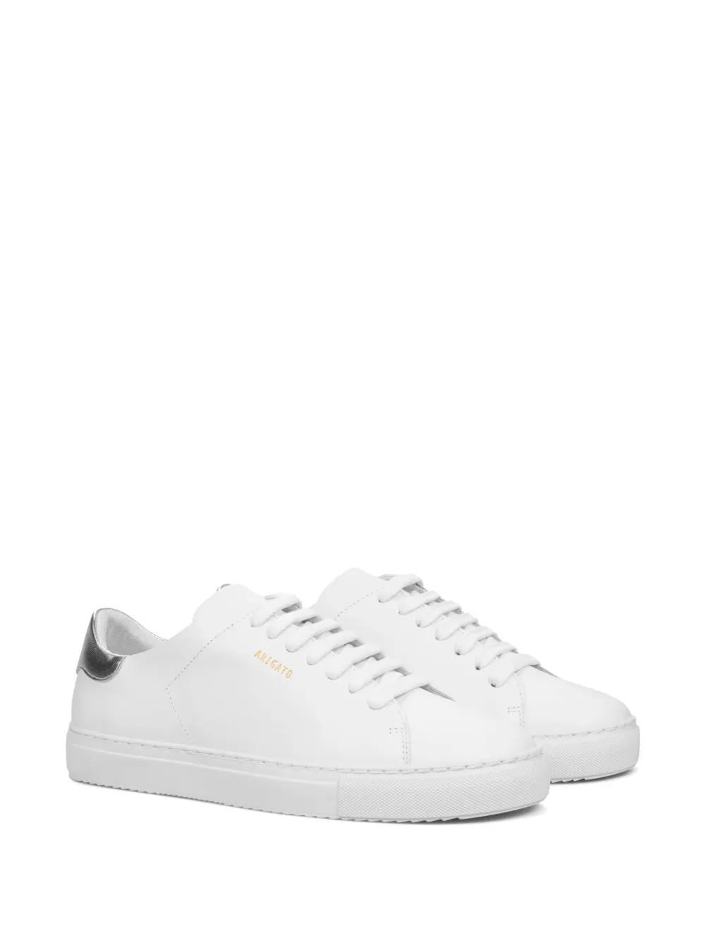 white/silver-tone leather smooth grain logo print to the side decorative stitching contrasting heel counter round toe front lace-up fastening branded insole flat rubber sole