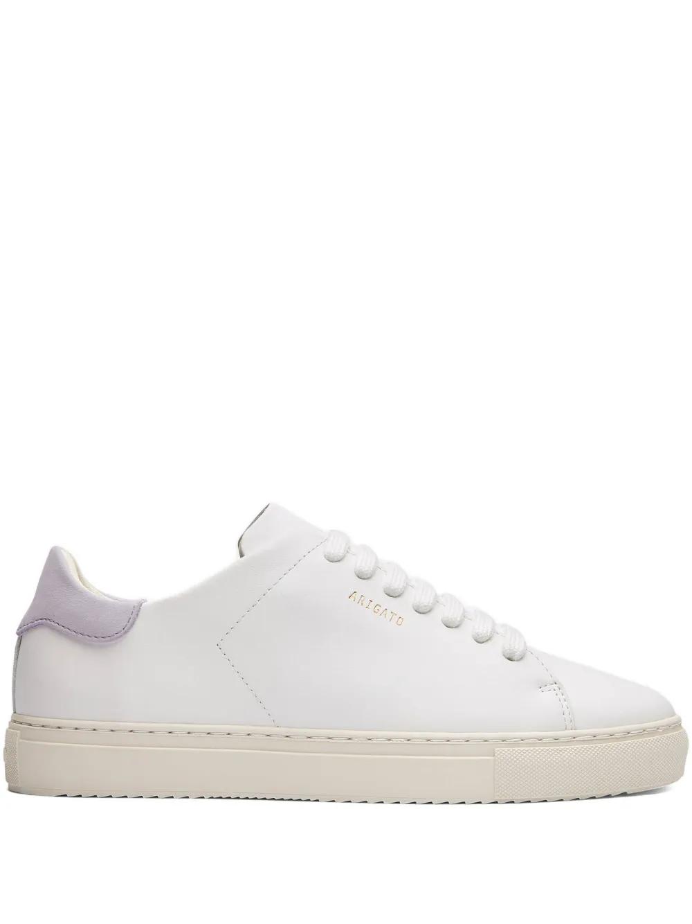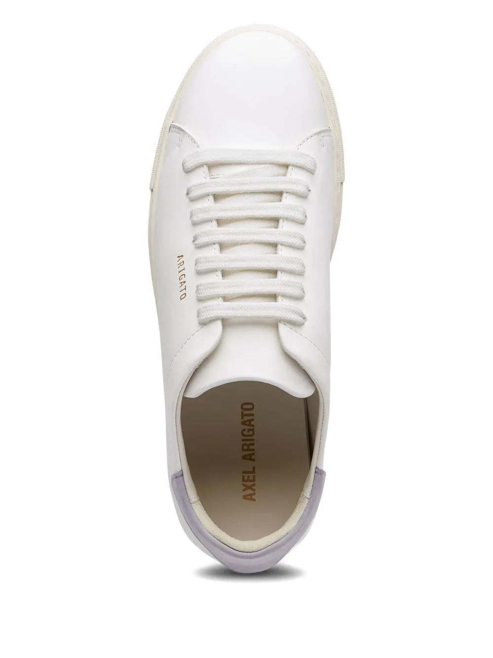 white lilac heel front lace-up fastening flat sole topstitching brand lettering