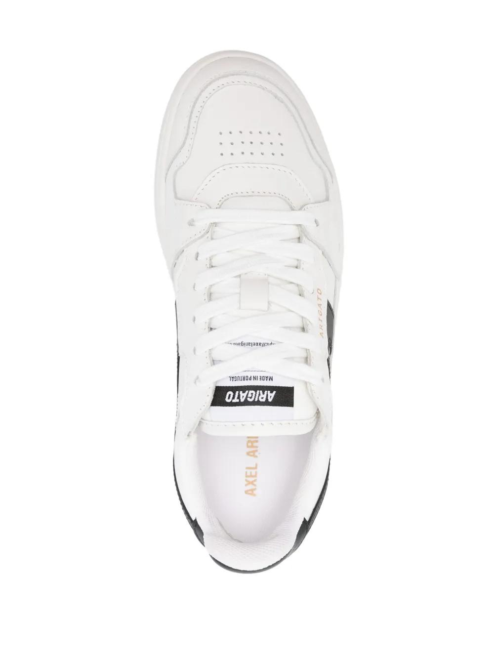 white calf leather smooth grain panelled design perforated toebox logo patch at the tongue logo stamp at side branded heel counter front lace-up fastening round toe branded leather insole flat rubber sole