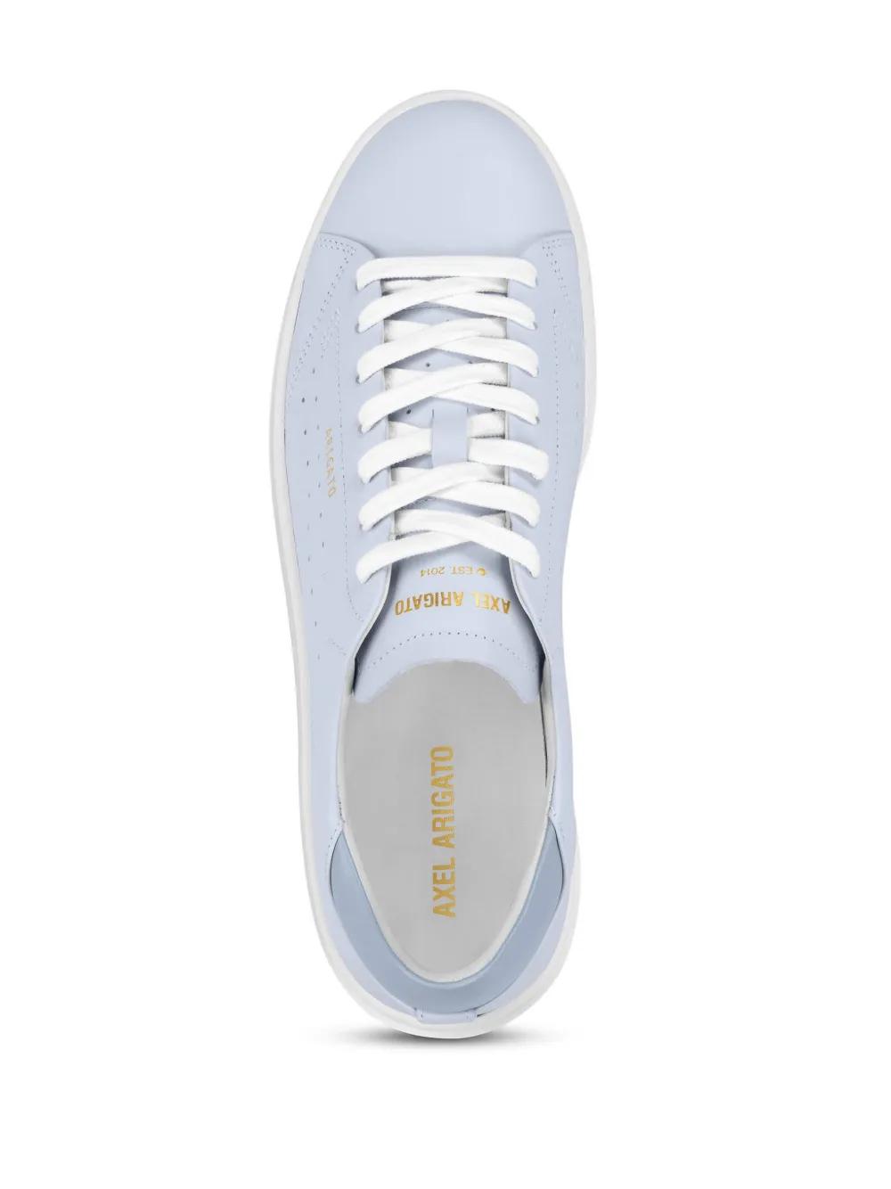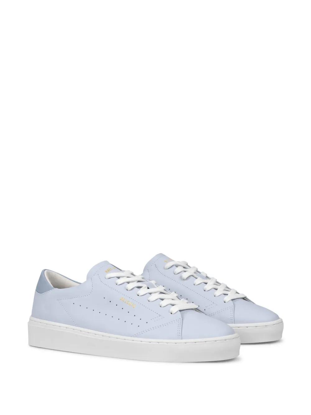 light blue leather smooth grain panelled design front lace-up fastening branded heel counter perforated detailing logo print to the side round toe branded insole flat rubber sole