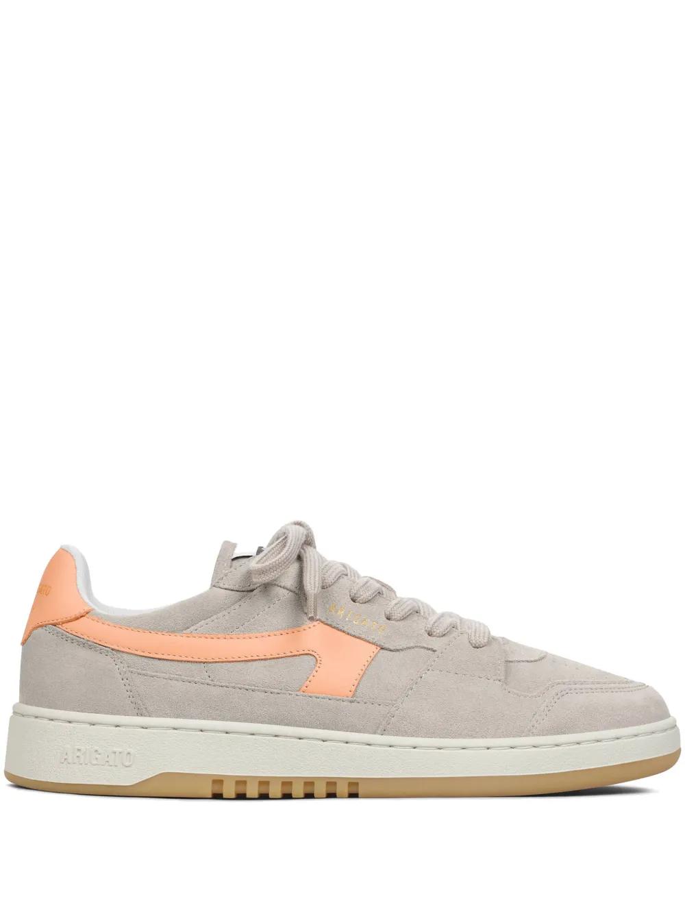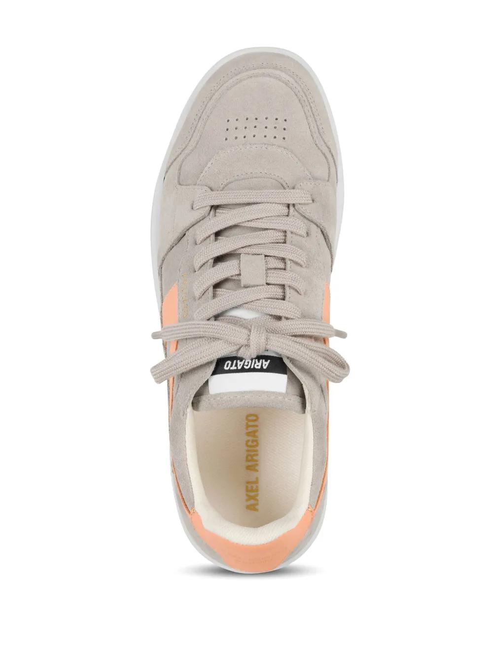 beige/orange suede panelled design front lace-up fastening contrasting branded heel counter embossed logo to the side logo patch at the tongue round toe perforated toebox branded insole flat rubber sole