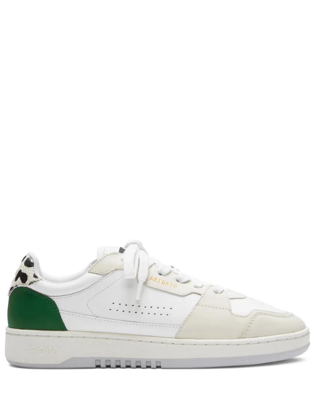 white multicolour calf leather panelled design colour-block design round toe perforated toebox logo print to the side logo patch at the tongue branded leather insole embossed logo to the side rubber sole front lace-up fastening