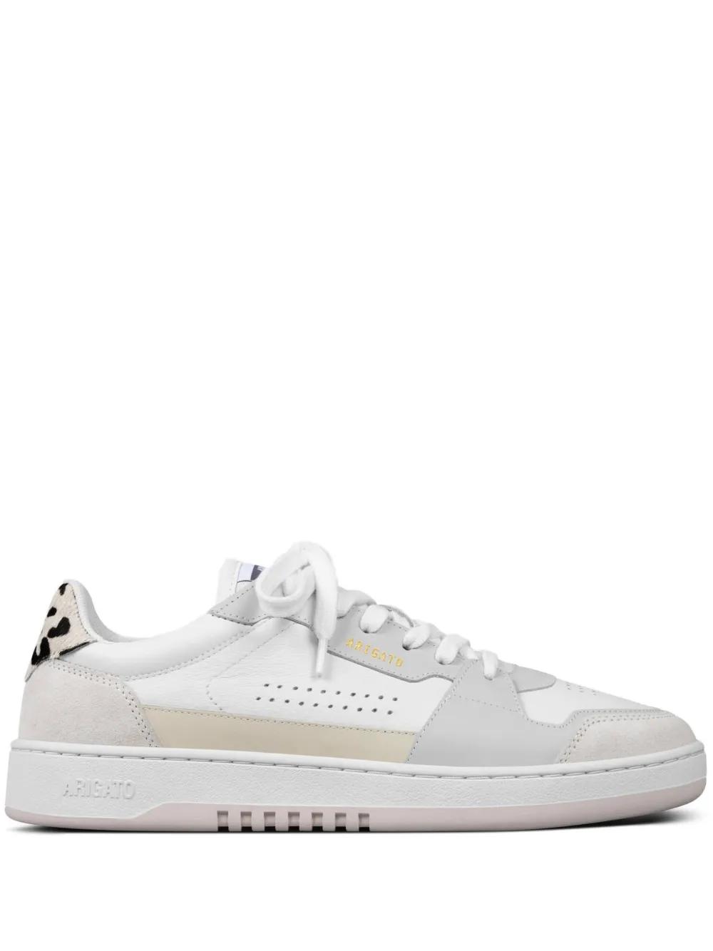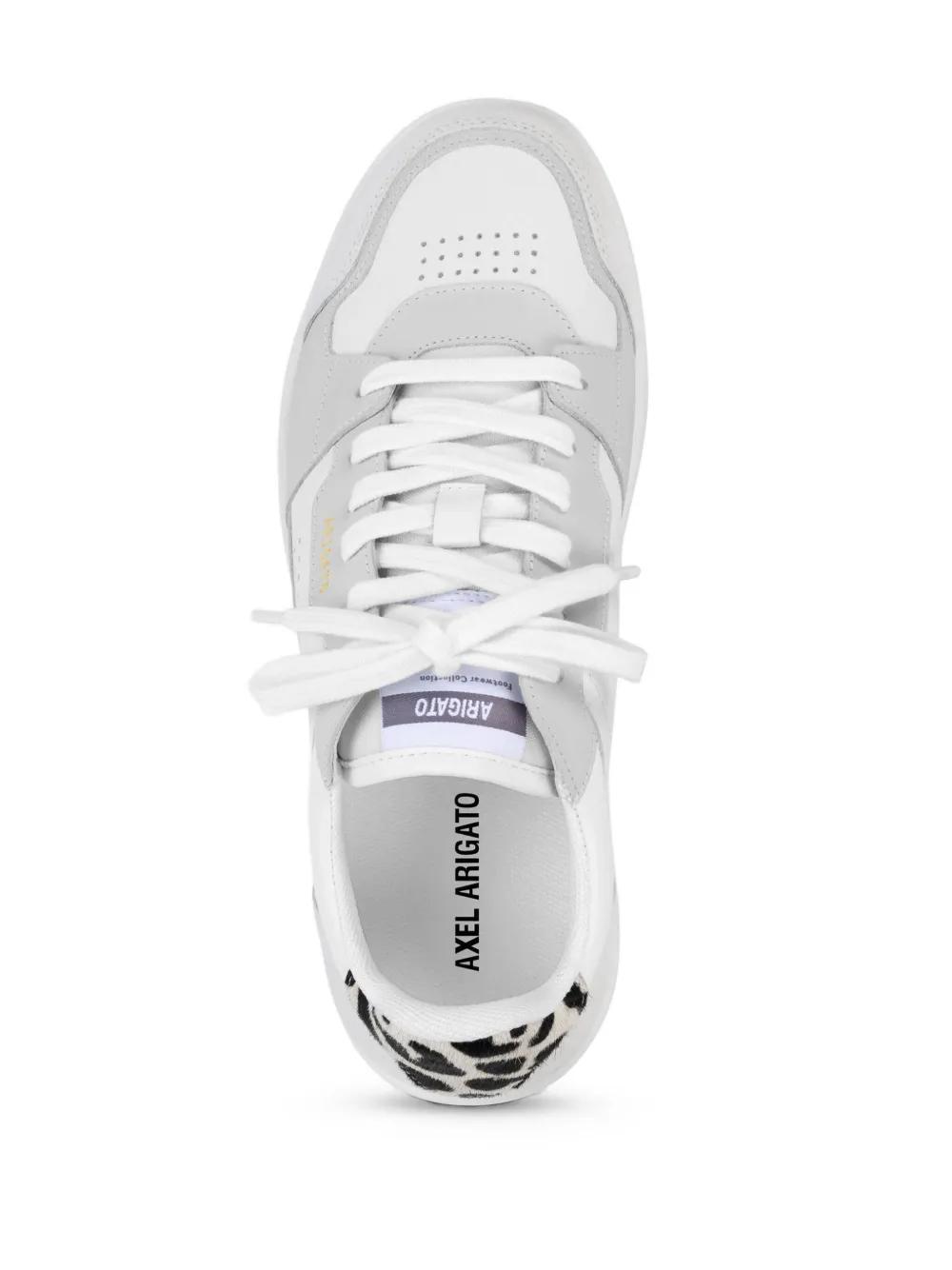 white/multicolour leather smooth grain panelled design front lace-up fastening contrasting branded heel counter embossed logo to the side logo patch at the tongue perforated detailing round toe branded insole flat rubber sole