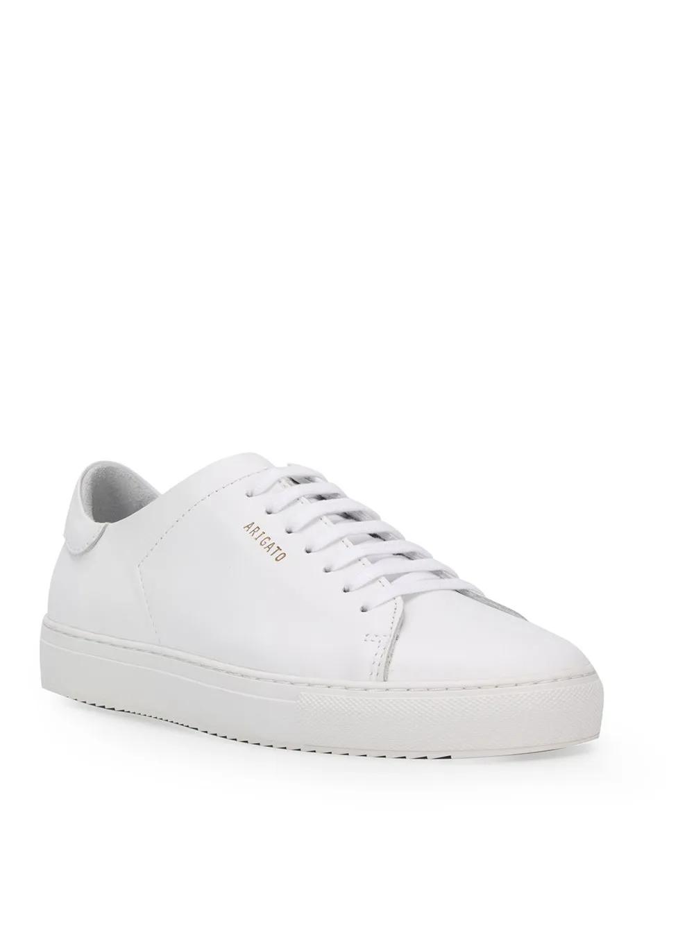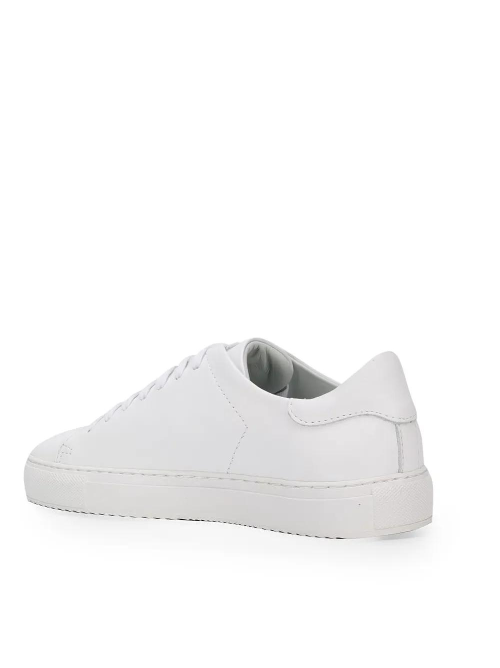 White leather lace-up sneakers from Axel Arigato featuring a round toe, a lace fastening, a branded insole, a flat rubber sole and a side embossed logo stamp.
