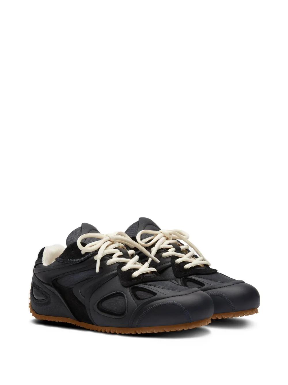 black leather and suede panelling lace-up fastening sculpted rubber sole perforated detailing low-top design