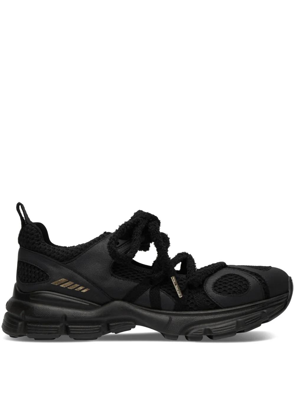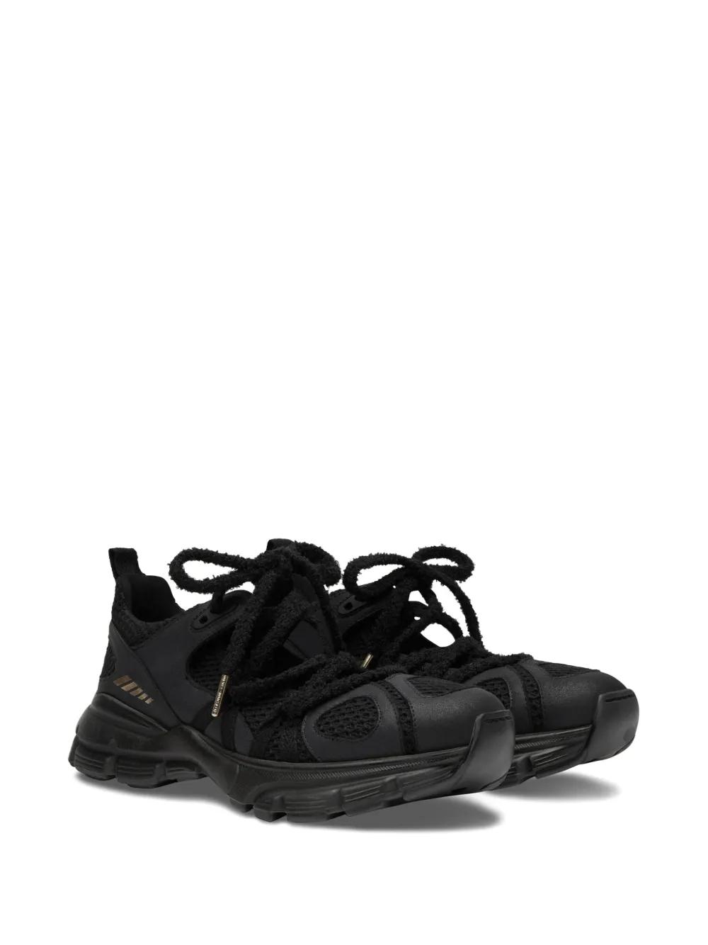 black front lace-up fastening chunky rubber sole pull-tab at the heel cut-out detailing