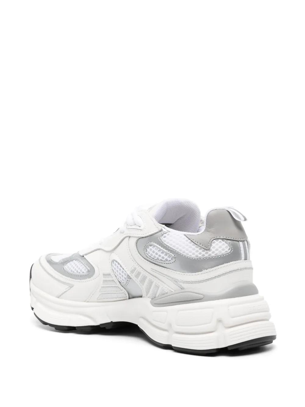 white calf leather panelled design mesh panelling round toe front lace-up fastening chunky rubber sole
