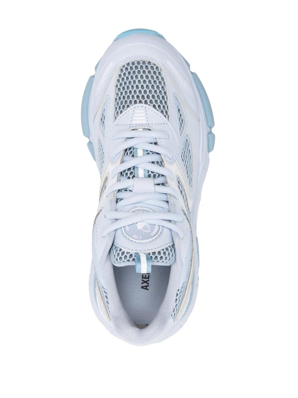 light blue/silver-tone calf leather panelled design mesh detailing logo print to the side logo patch at the tongue pull-tab at the tongue front lace-up fastening round toe chunky rubber sole