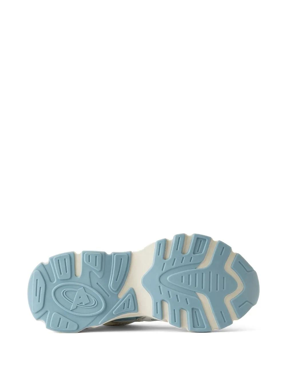 cream white/blue leather logo patch to the side mesh detailing front lace-up fastening logo patch at the tongue pull-tab at the heel pointed toe chunky rubber sole