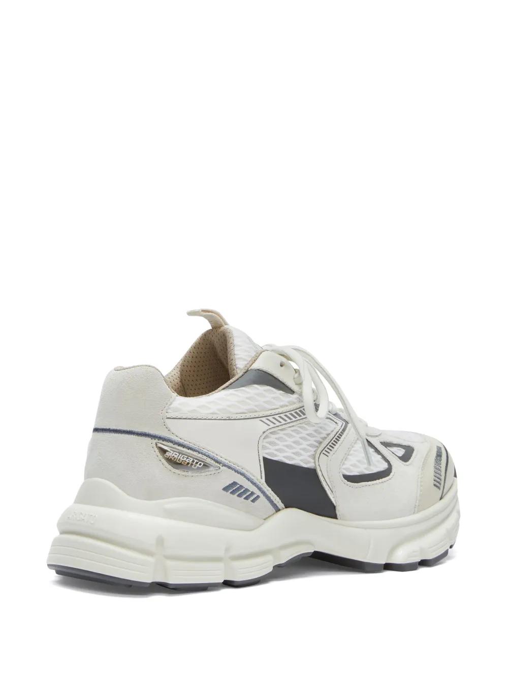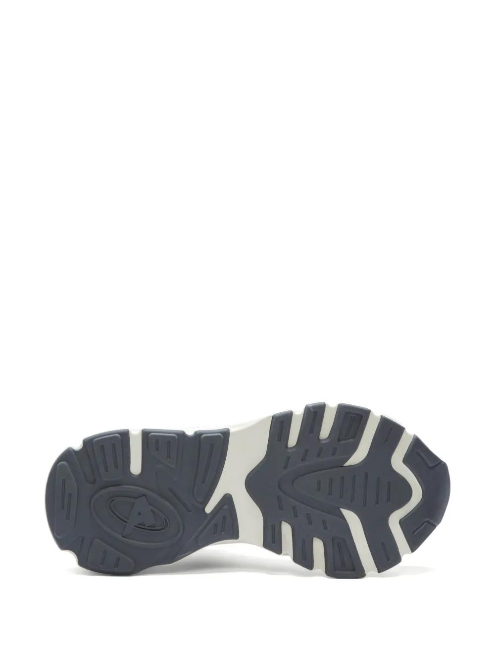 ecru/charcoal grey leather panelled design mesh panelling reflective detailing round toe front lace-up fastening logo patch at the tongue branded insole chunky rubber sole