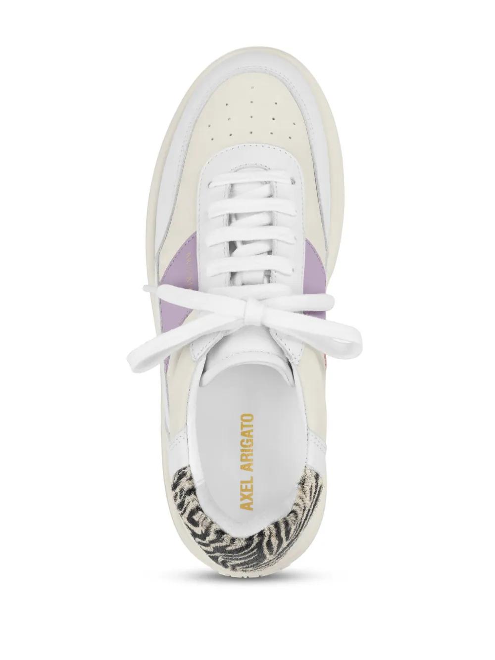 white/multicolour leather smooth grain colour-block panelled design front lace-up fastening contrasting branded heel counter embossed logo to the side logo patch at the tongue round toe perforated toebox branded insole flat rubber sole
