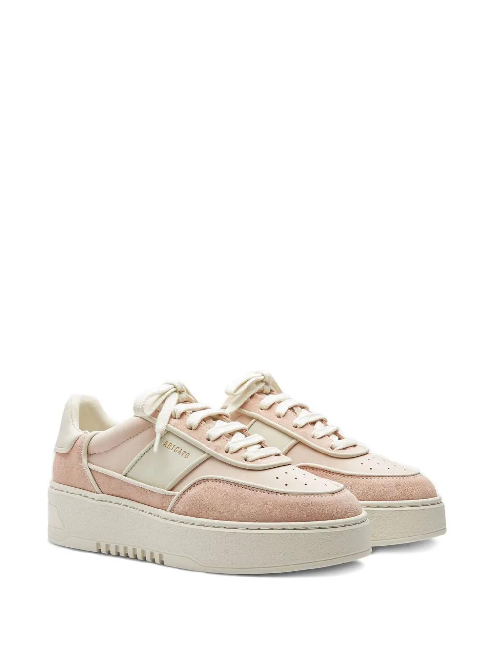 pink leather upper suede panelling lace-up fastening flat sole platform sole