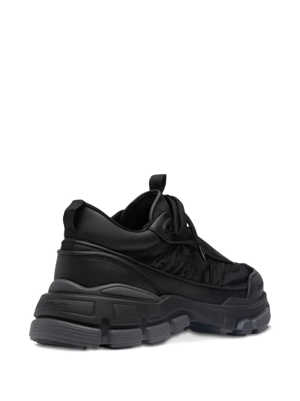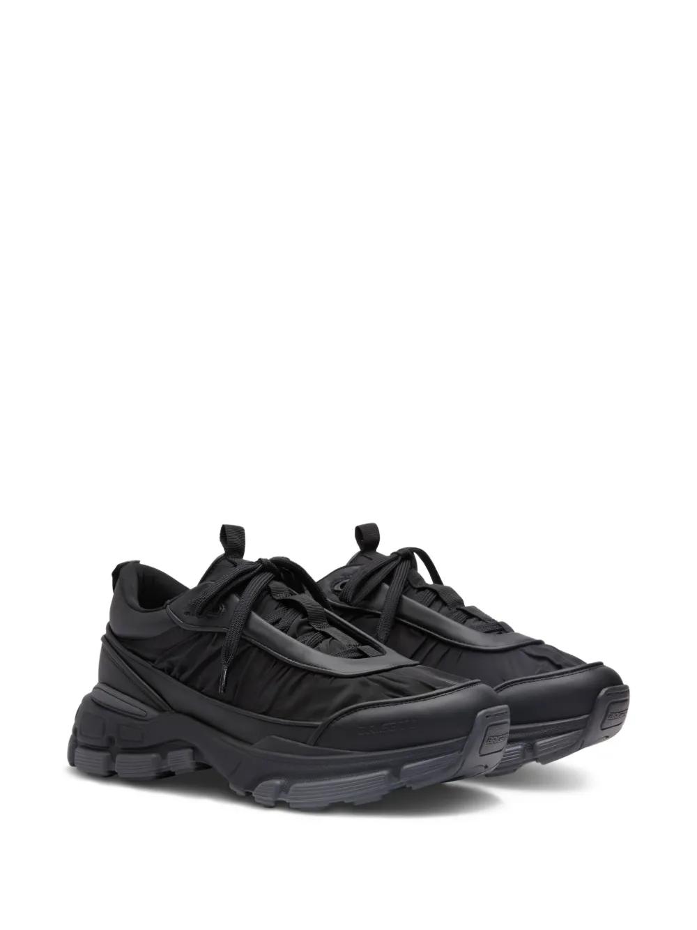 black front lace-up fastening chunky rubber sole pull-tab at the tongue branded insole