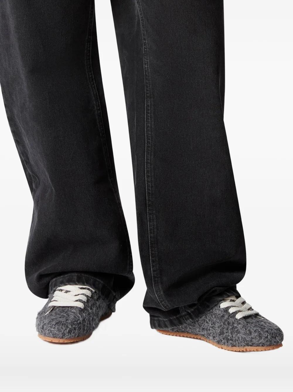 black fuzzy texture decorative laces rubber outsole logo detailing
