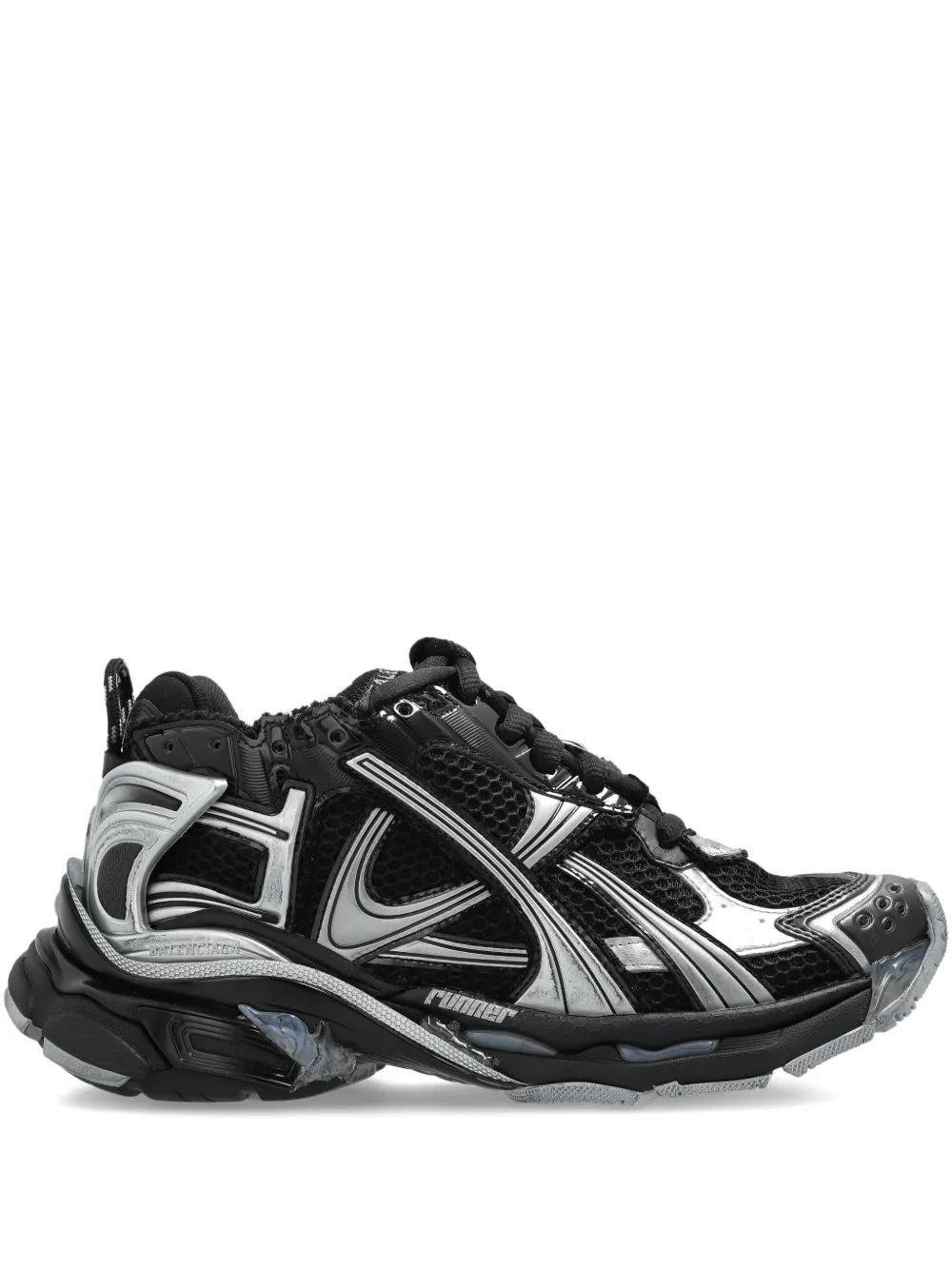 black mesh panelling lace-up fastening rubber sole logo detailing