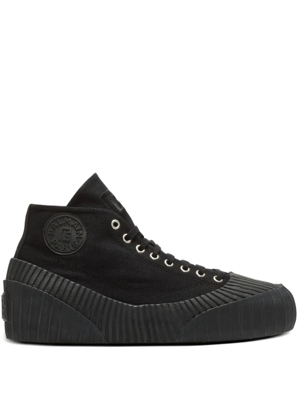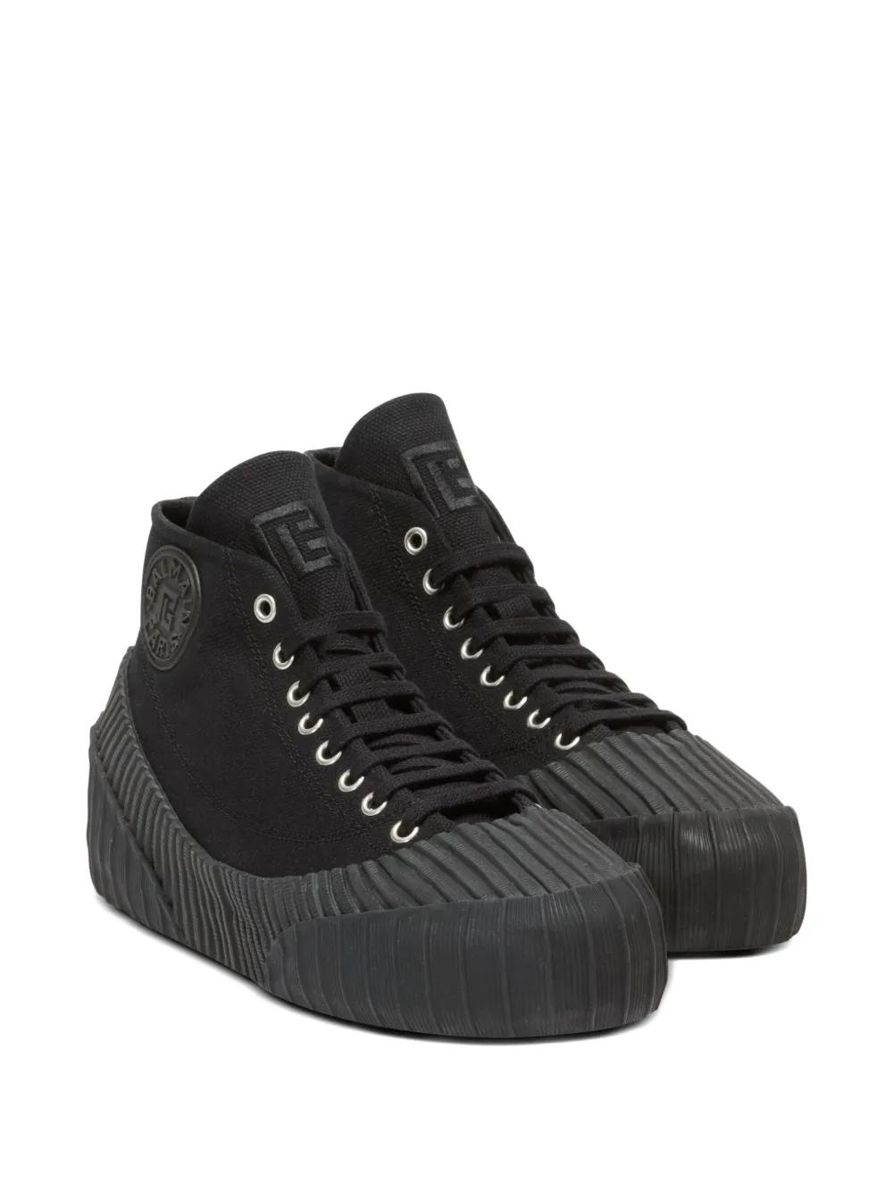 black cotton upper lace-up fastening logo plaque rubber sole round toe