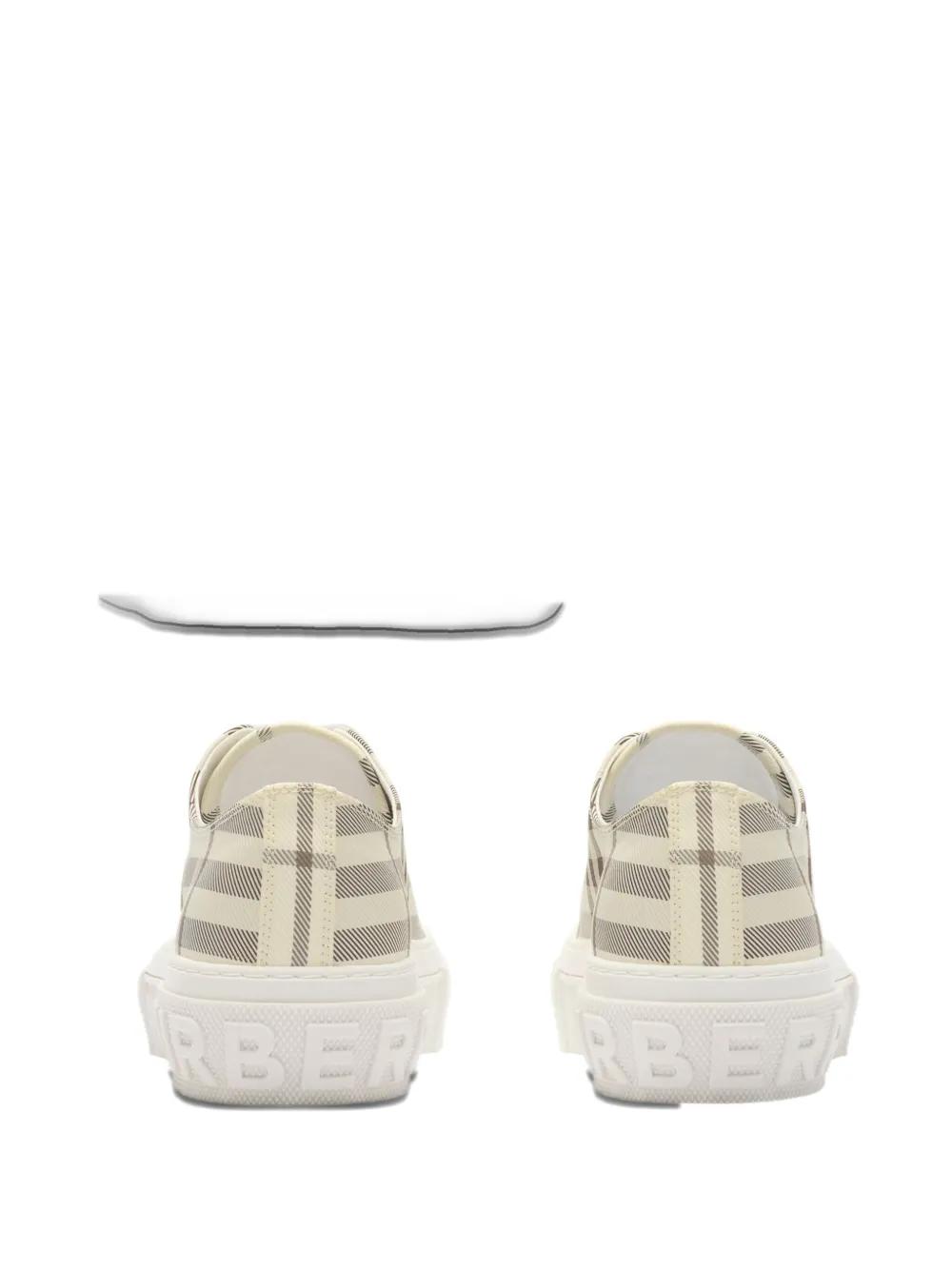 light beige check pattern embossed logo low-top lace-up closure This piece comes complete with a protective dust bag.