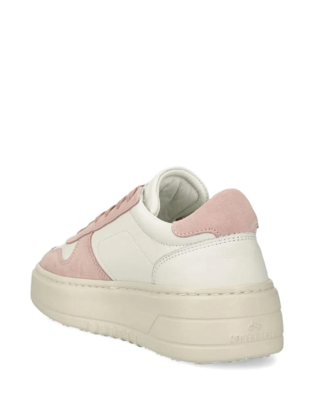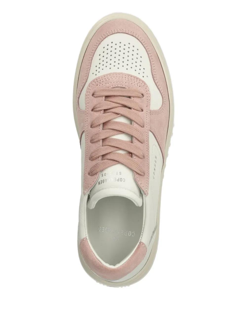 white leather upper pink suede-panelling perforated toe-box lace-up fastening