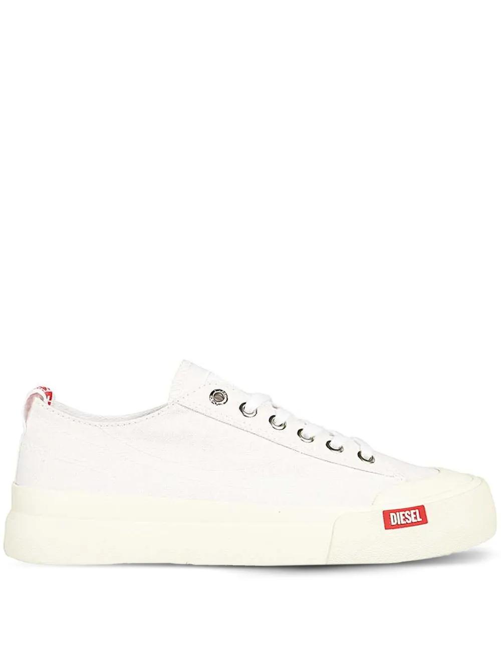 white nappa leather tonal design debossed logo to the side round toe front lace-up fastening pull-tab at the tongue flat rubber sole