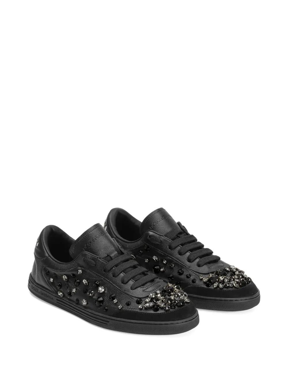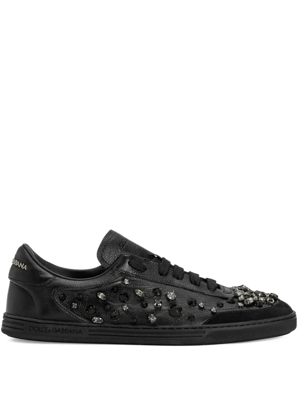 Dolce & Gabbana crystal-embellished leather sneakers - Black