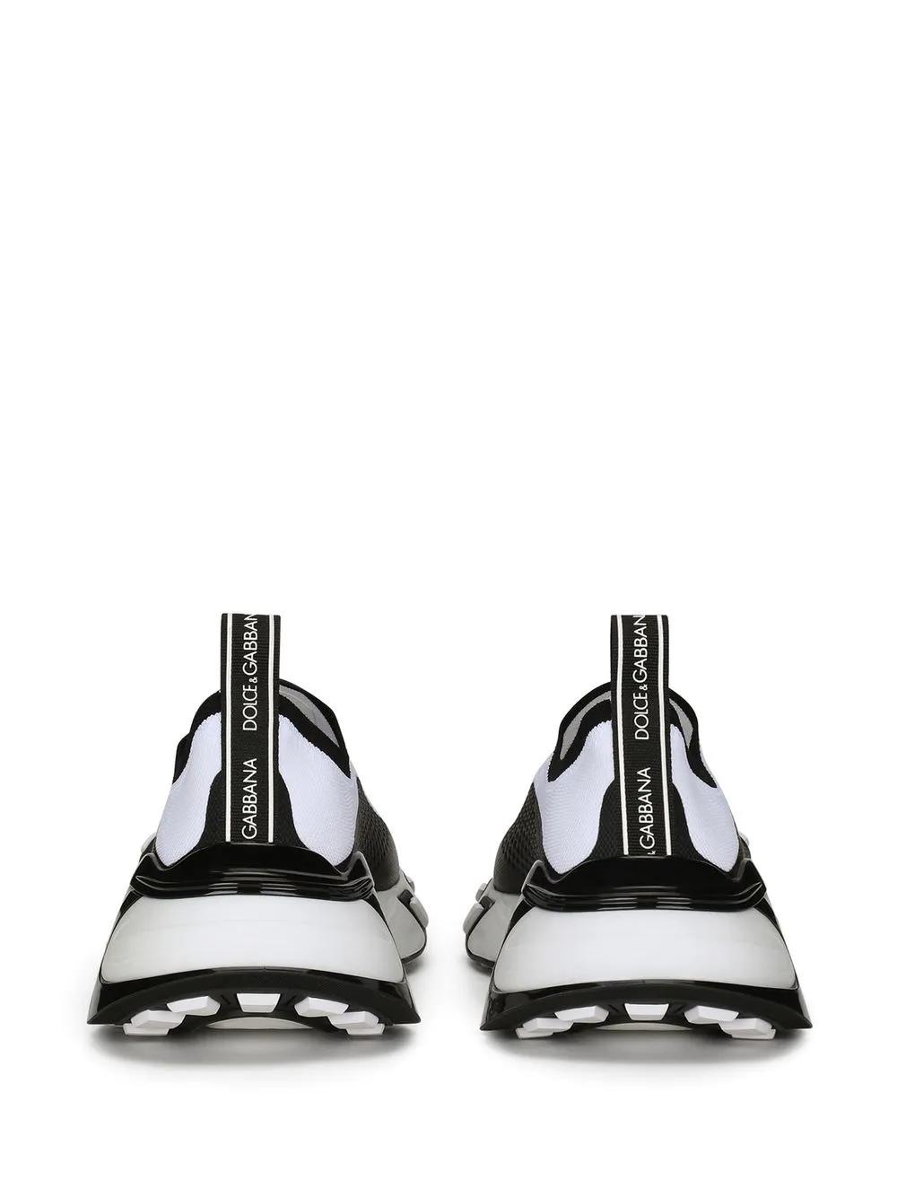 black/white knitted upper logo print to the front logo pull-tab at the heel branded insole chunky rubber sole This piece fits small – take one size up
