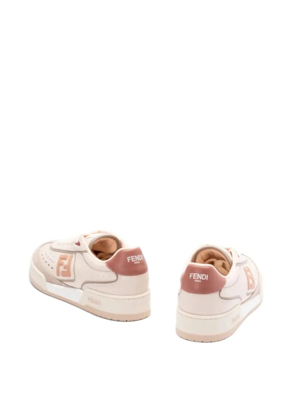 beige leather FF logo perforated detailing flat sole lace-up fastening