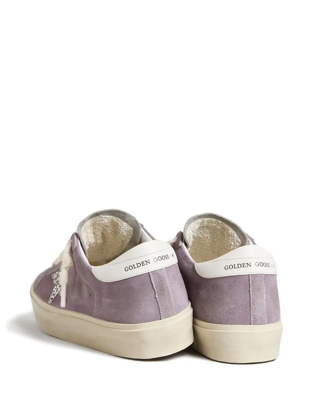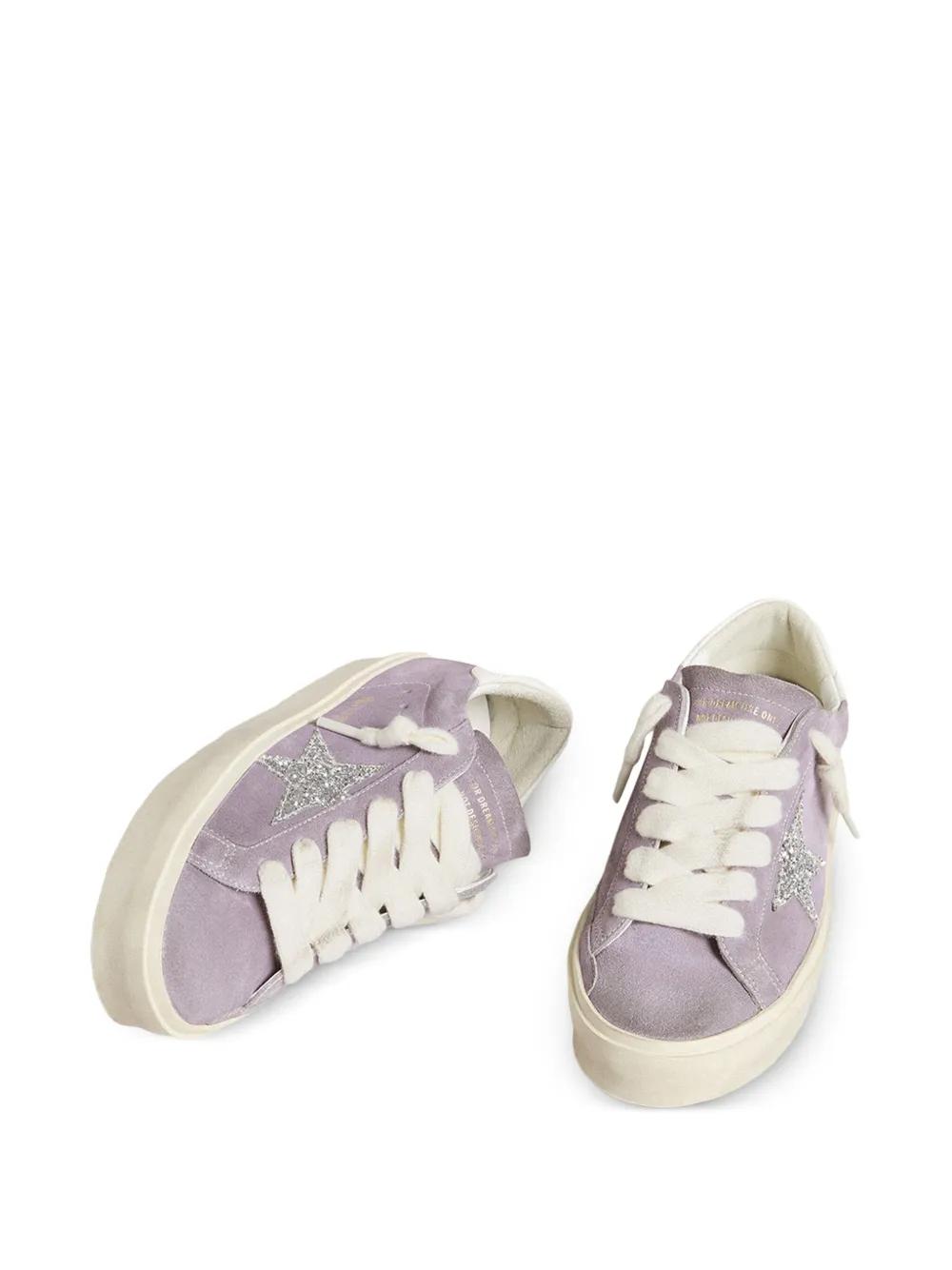 lavender purple front lace-up fastening flat rubber sole signature star patch to the sides branded heel counter