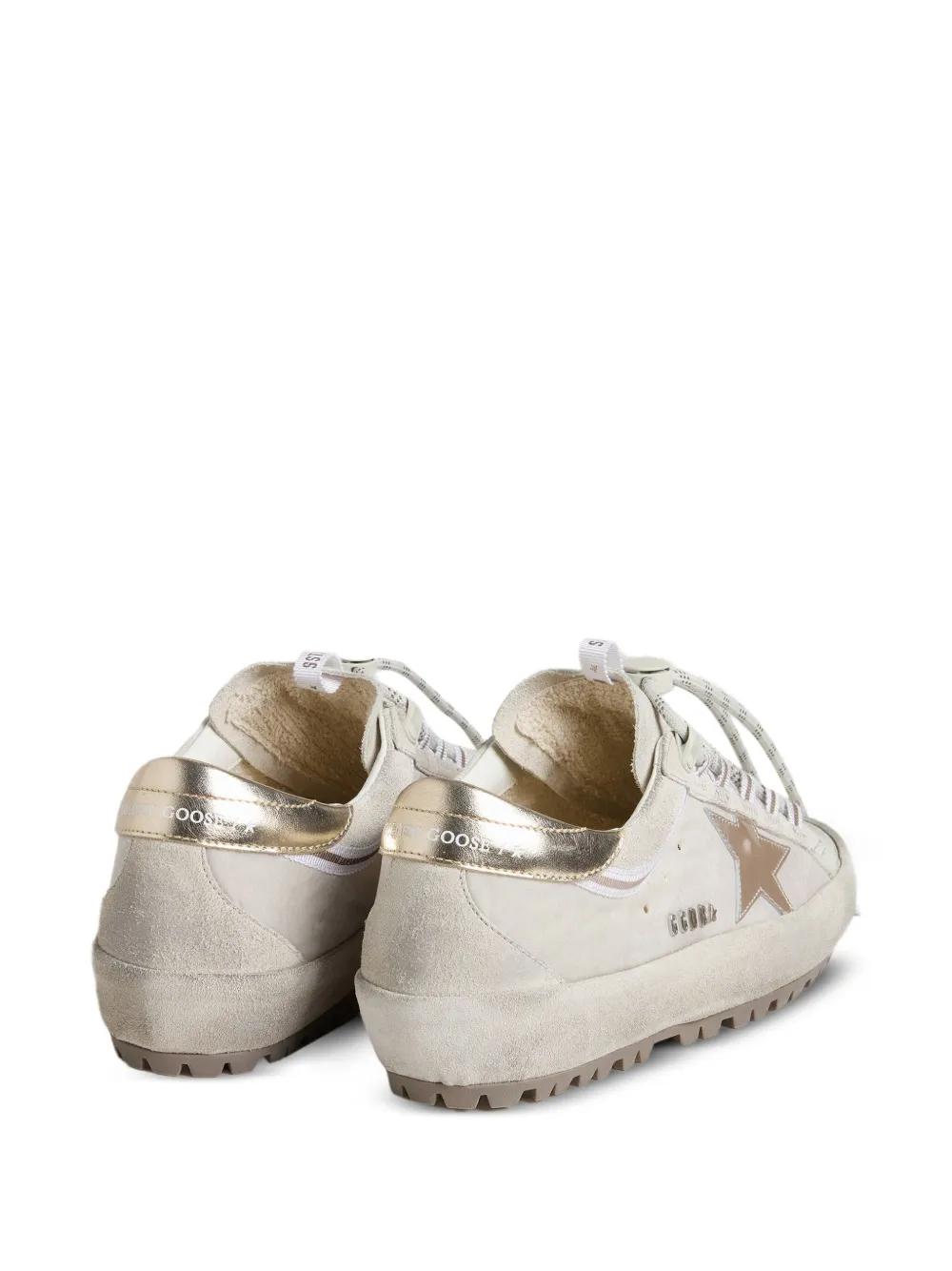 light gray nylon upper silver metallic leather star platinum metallic leather heel tab white suede inserts hiking-style laces with adjustable stopper two-tone grosgrain trim distressed finish handmade