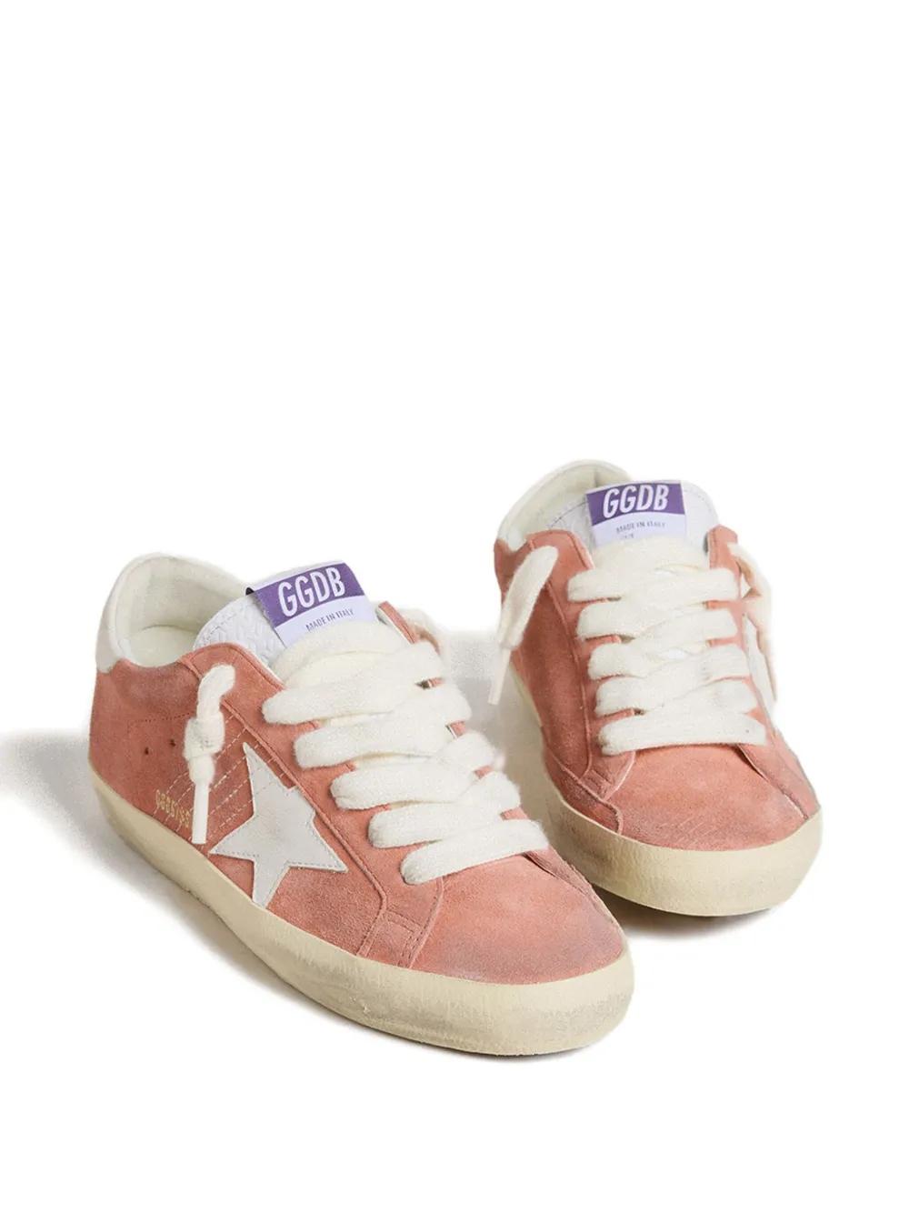 coral pink front lace-up fastening signature star patch to the sides contrasting branded heel counter flat rubber sole