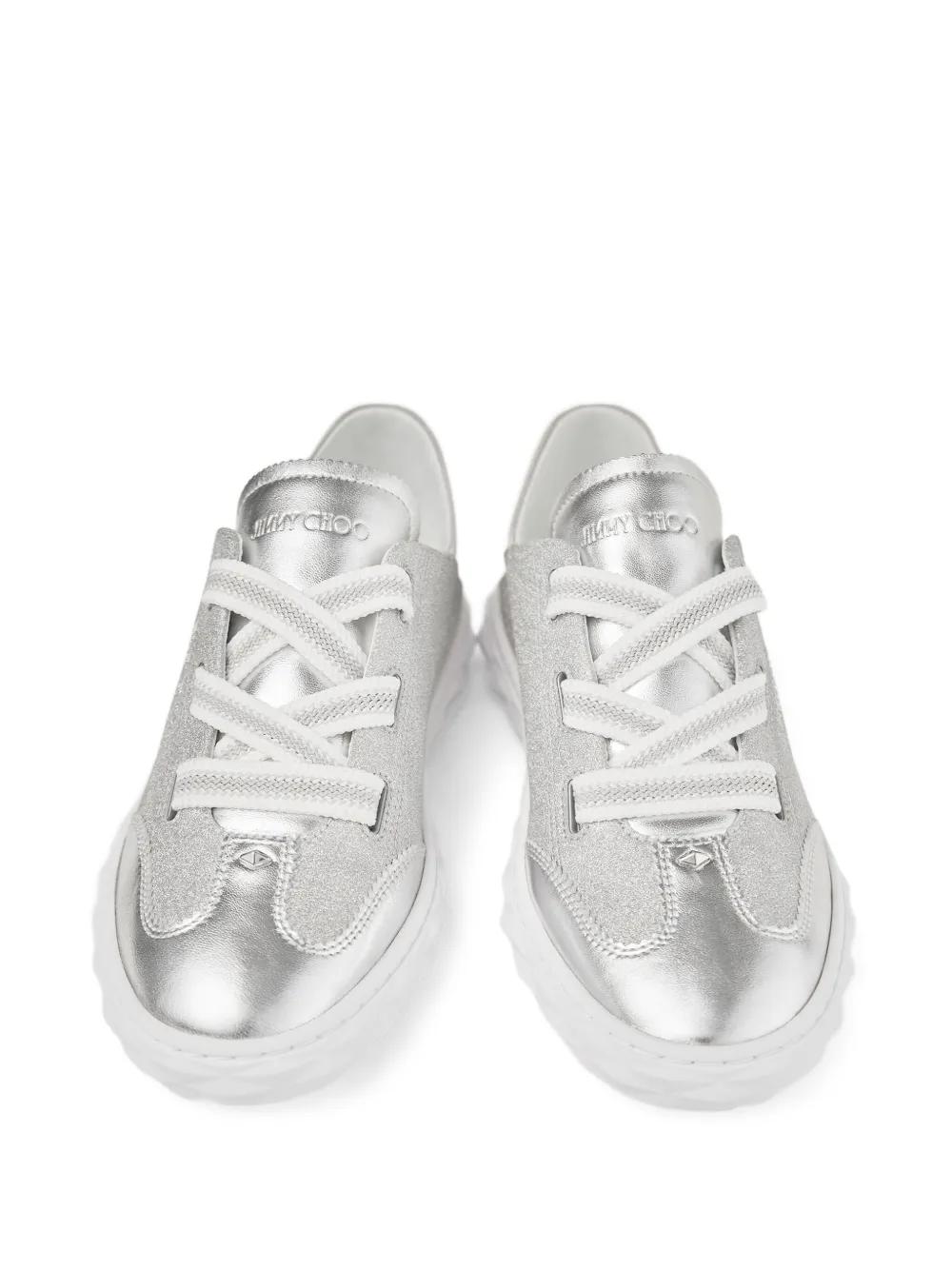 silver-tone glitter embellishment leather panel lace-up fastening rubber sole