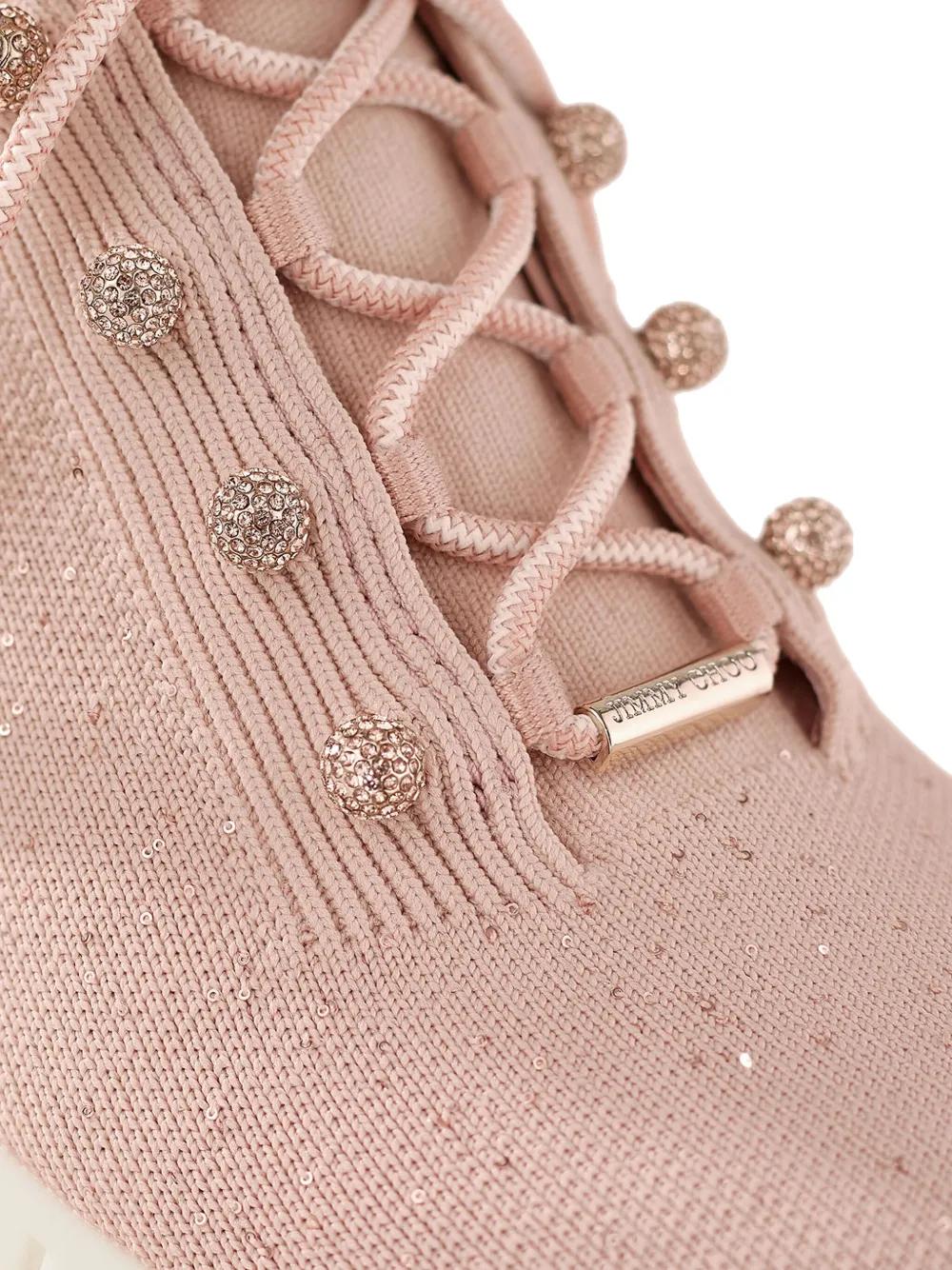 light pink cashmere front lace-up fastening ridged rubber sole branded insole embossed logo to the rear knitted upper sock-style ankle pull-tab at the heel rhinestone embellishment logo-engraved shoelace tag round toe Wardrobe Icon