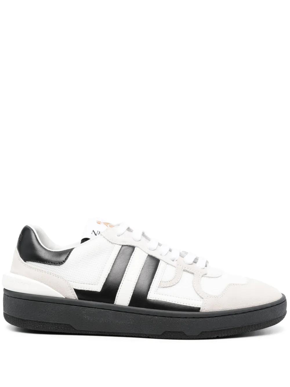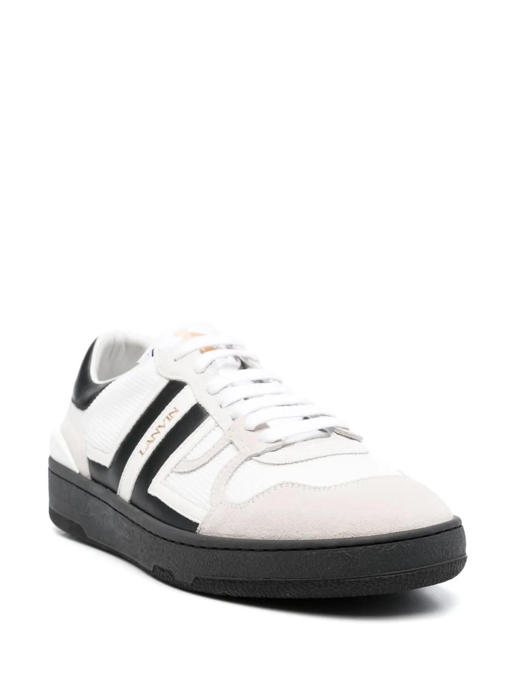 white/light grey/black calf leather/calf suede front lace-up fastening panelled design mesh detailing round toe signature Mother and Child motif contrasting heel counter flat rubber sole