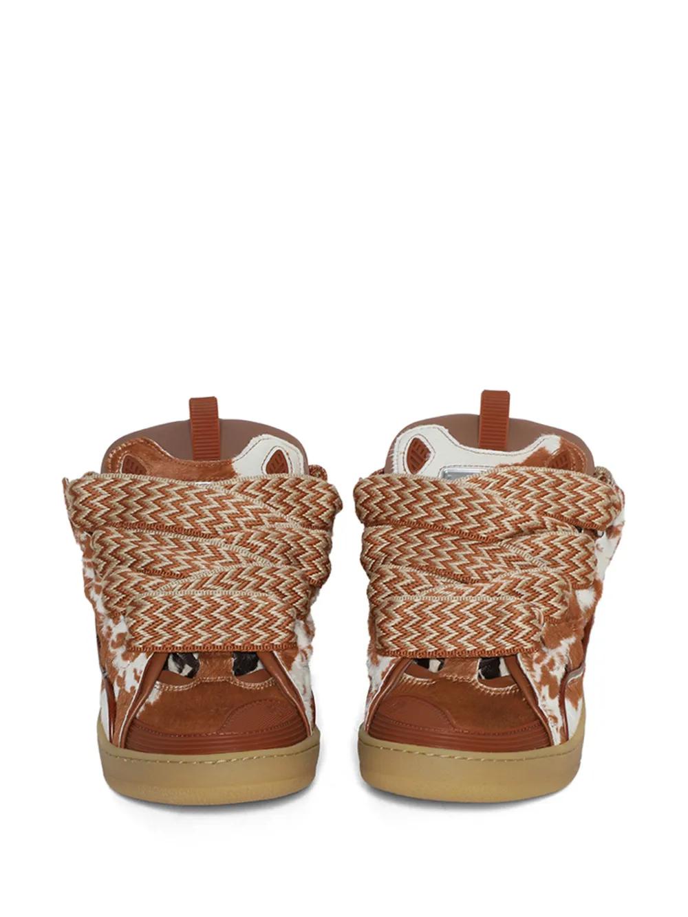 brown calf leather panelled design animal print front lace-up fastening with herringbone pattern laces contrasting zebra print heel counter pull-tab at the tongue logo plaque at the tongue almond toe rubber toecap branded insole rubber sole