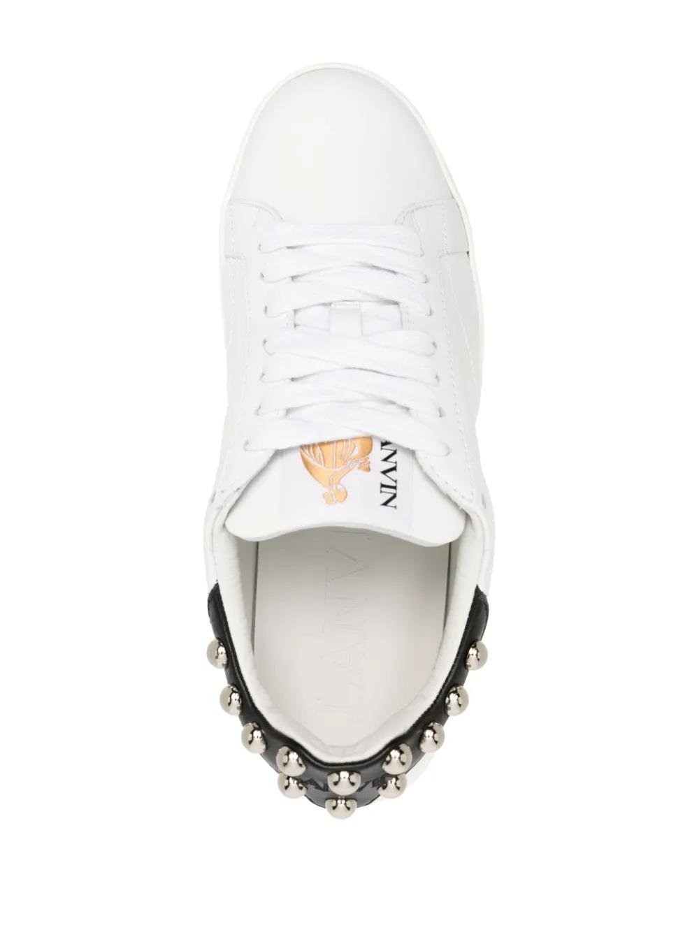 white/black calf leather silver-tone stud detailing contrasting branded heel counter signature Mother and Child logo patch at the tongue round toe rubber sole front lace-up fastening