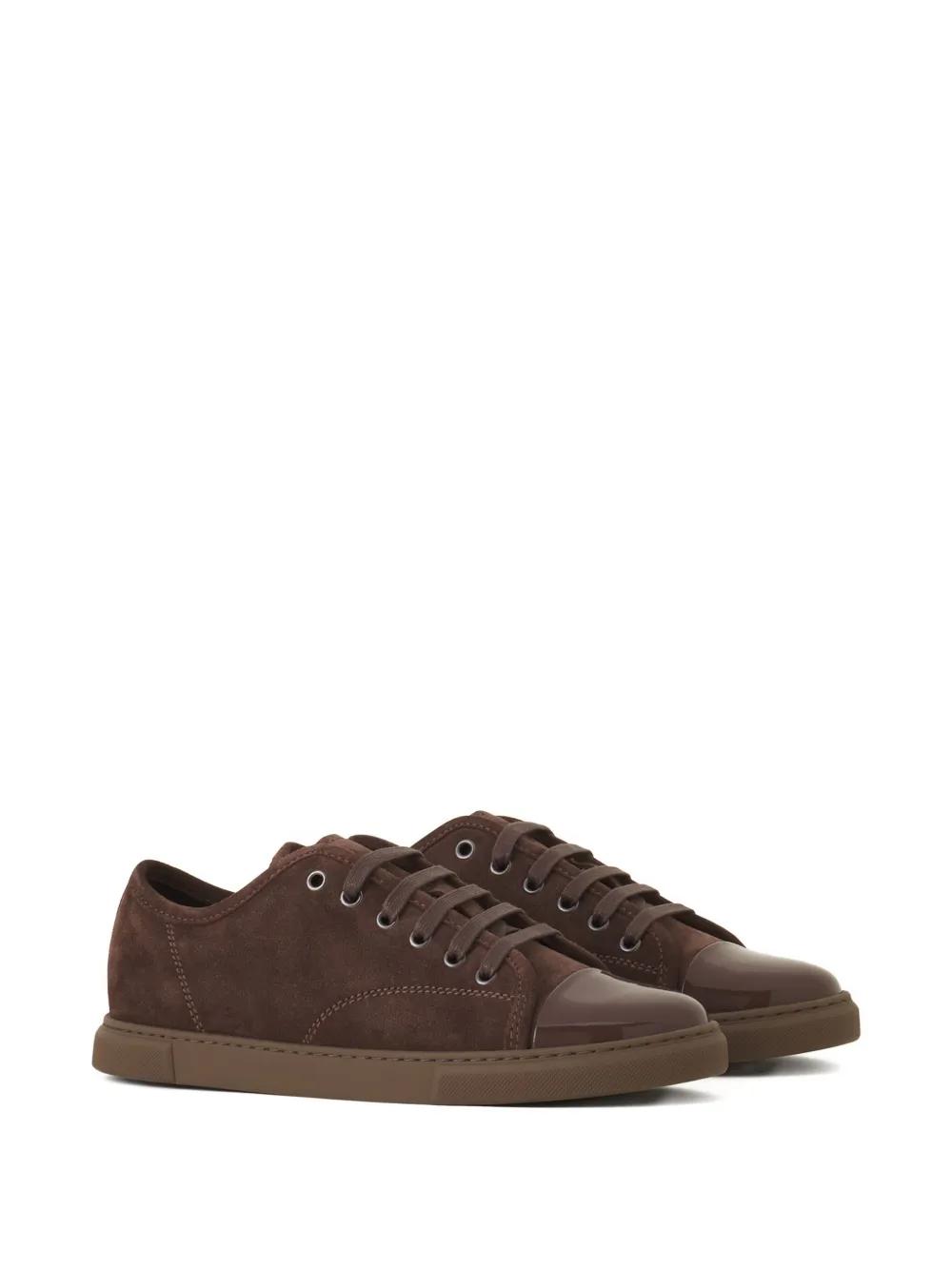 brown toe cap lace-up fastening eyelets flat sole topstitching