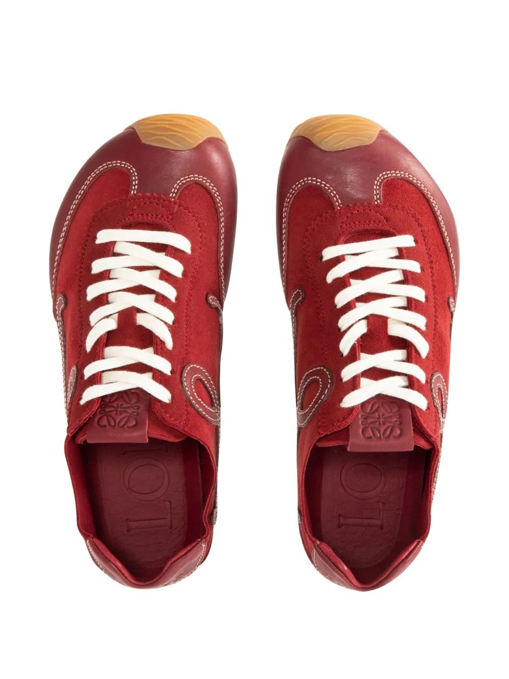 burgundy logo appliqué contrast stitching round toe rubber sole front lace-up fastening