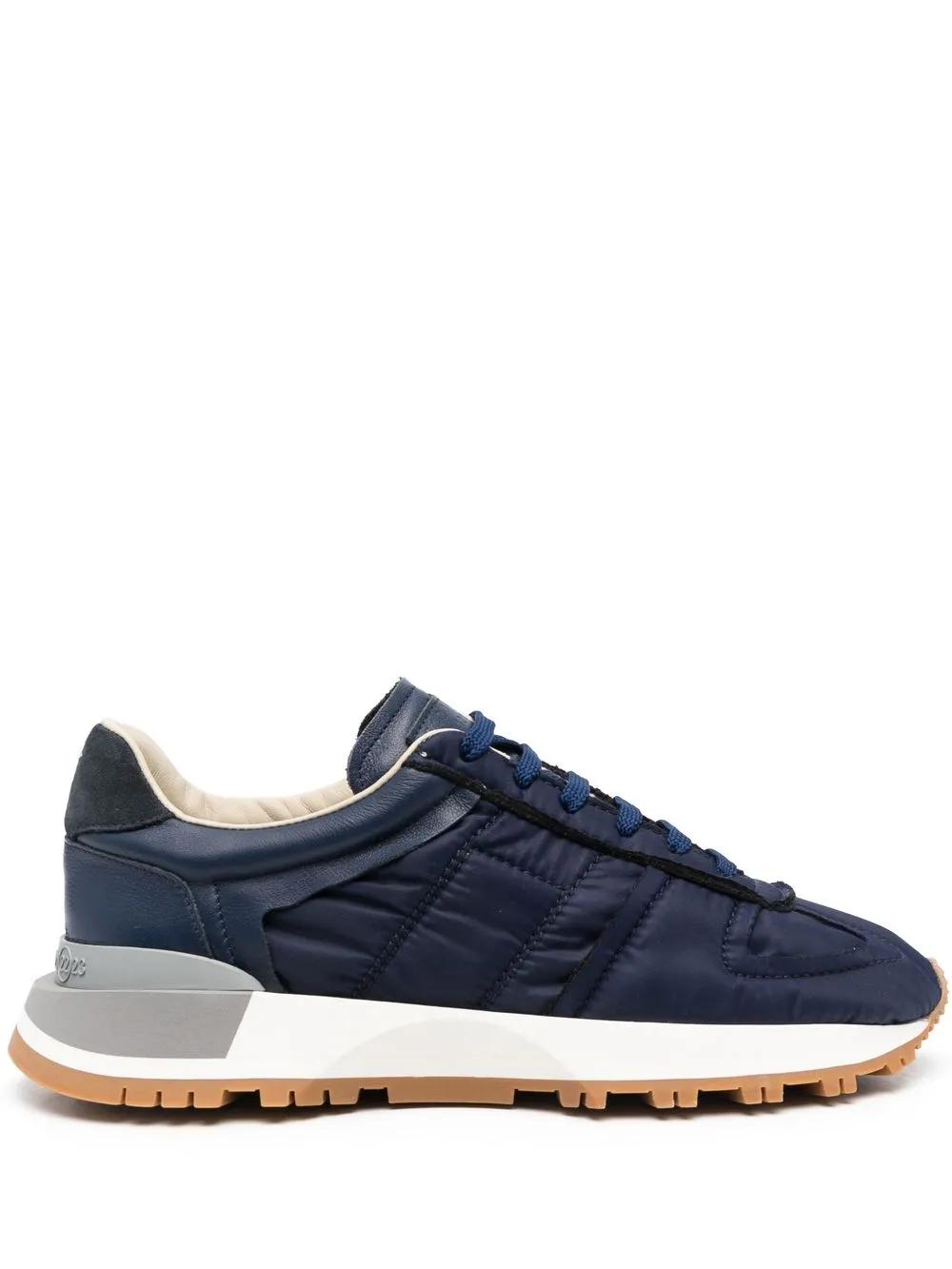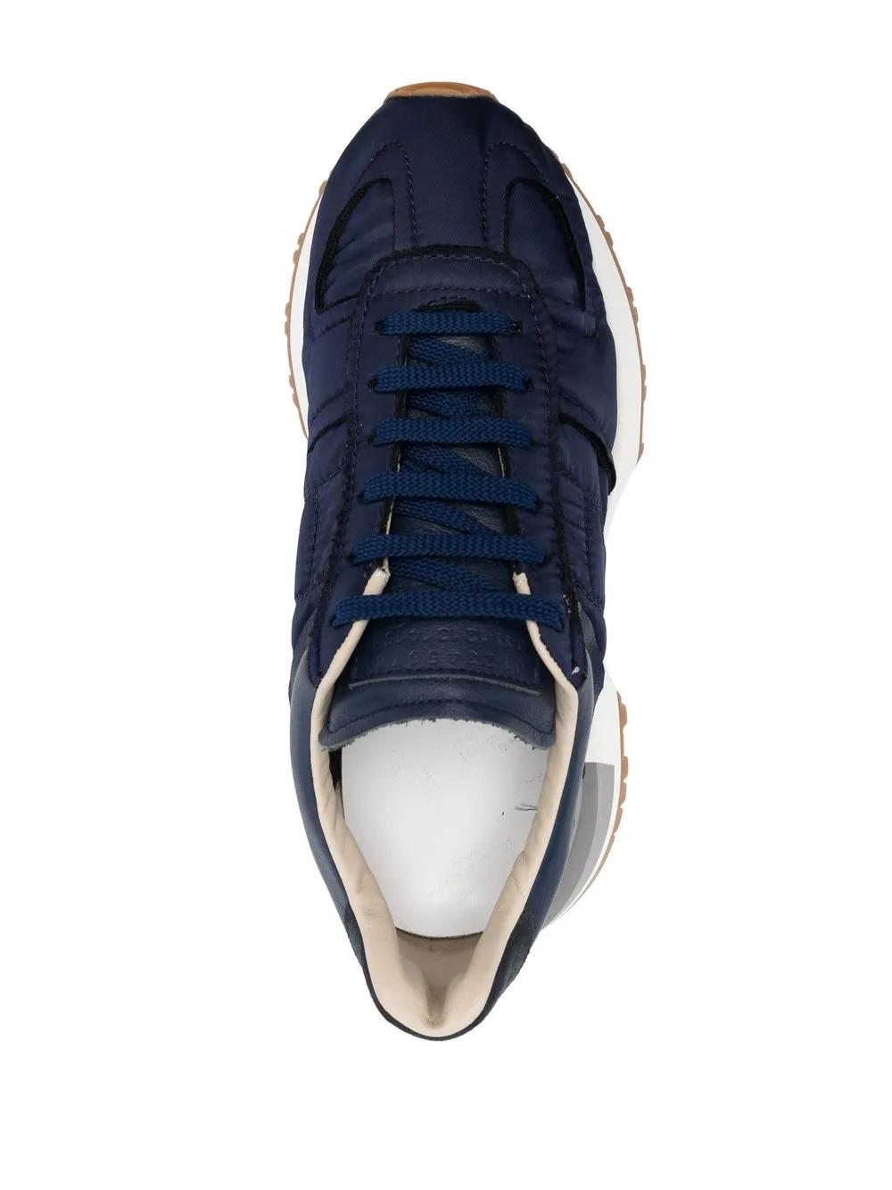 blue/grey calf leather panelled design round toe front lace-up fastening rubber sole